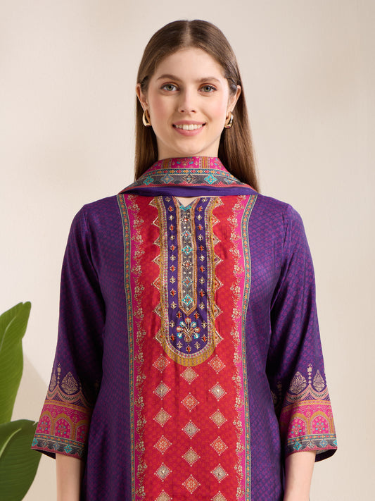 MRP (Inclusive of all taxes)Regular price ₹ 3,199.00₹ 3,199.00 Regular priceUnit price / per₹ 3,199.00Sale priceM L XL 2XL add to cart{"id":7733138915414,"title":"Ethnic Printed \u0026 Embroidered Straight Kurta with Pant \u0026 Dupatta - Purple","handle":"ethnic-printed-embroidered-straight-kurta-with-pant-dupatta-purple-1","description":"\u003ch1\u003eHighlights\u003c\/h1\u003e\n\u003cp\u003e\u003cbr\u003e\u003cbr\u003e-Turn heads in this stunning Purple Ethnic Ensemble, featuring a beautifully embroidered straight kurta crafted from luxurious muslin silk fabric. Designed with a classic round neckline and paired with a solid pant for effortless elegance. The look is completed with a vibrant printed dupatta that adds the perfect splash of tradition and charm. A must-have for festive gatherings and special occasions!\u003c\/p\u003e\n\u003ch1\u003e\n\u003cbr\u003eFabric \u0026amp; Colour\u003c\/h1\u003e\n\u003cp\u003e\u003cbr\u003eTop Colour: Purple\u003cbr\u003eTop Fabric: Muslin Silk\u003cbr\u003eBottom Colour: Purple\u003cbr\u003eBottom Fabric: Shantoon\u003cbr\u003eDupatta Colour: Purple\u003cbr\u003eDupatta Fabric: Muslin Silk\u003c\/p\u003e\n\u003ch1\u003eSpecifications\u003c\/h1\u003e\n\u003cp\u003e\u003cbr\u003eTop Design: Floral print, Ethnic print\u003cbr\u003eTop Craft: Sequins, Embroidery, Plain and Prints\u003cbr\u003eTop Shape: Straight\u003cbr\u003eNeck: Round Neck\u003cbr\u003eSleeve Length: Three-Quarter Sleeves\u003cbr\u003eTop Length: Calf Length\u003cbr\u003eHemline: Straight\u003cbr\u003eSlit: Side Slits\u003c\/p\u003e\n\u003cp\u003eBottom Type: Trousers\u003cbr\u003eBottom Closure: Slip-On\u003cbr\u003eWaistband: Elasticated\u003c\/p\u003e\n\u003cp\u003eDupatta Pattern: Printed\u003cbr\u003eDupatta Border: Printed\u003c\/p\u003e\n\u003cp\u003eWash Care: Machine Wash\u003c\/p\u003e\n\u003cp\u003eLength (in inches)\u003cbr\u003eKurta – 45, Sleeves – 17,\u003cbr\u003eBottom – 42\u003c\/p\u003e\n\u003cp\u003eModel’s Height: 5’7”. Wearing Size S.\u003c\/p\u003e\n\u003ch1\u003eProduct Information\u003c\/h1\u003e\n\u003cp\u003e\u003cbr\u003eManufactured\/Packed\/Marketed By:\u003cbr\u003eFashor Lifestyle Pvt. Ltd.\u003cbr\u003e28\/30, Sudarshanpura Industrial Area,\u003cbr\u003eJaipur - 302006.\u003cbr\u003eCountry of Origin: India\u003c\/p\u003e","published_at":"2025-12-10T12:34:37+05:30","created_at":"2025-12-10T11:49:54+05:30","vendor":"FASHOR","type":"3P Kurta Set","tags":["2XL","33376","above-3000","All Styles","casualwear","colour_purple","craft_embroidery","craft_plain-and-prints","craft_sequins","design_ethnic-print","design_floral-print","fabric_muslin-silk","KURTI","kurtis","L","M","meta-size-chart-","now-trending","shape_straight","XL"],"price":319900,"price_min":319900,"price_max":319900,"available":true,"price_varies":false,"compare_at_price":319900,"compare_at_price_min":319900,"compare_at_price_max":319900,"compare_at_price_varies":false,"variants":[{"id":43724419596374,"title":"M","option1":"M","option2":null,"option3":null,"sku":"38-ST033376J5FS","requires_shipping":true,"taxable":true,"featured_image":{"id":35858813550678,"product_id":7733138915414,"position":3,"created_at":"2025-12-10T11:50:33+05:30","updated_at":"2025-12-10T11:52:01+05:30","alt":null,"width":1080,"height":1440,"src":"\/\/fashor.com\/cdn\/shop\/files\/32876_1.jpg?v=1765347721","variant_ids":[43724419596374,43724419629142,43724419661910,43724419694678]},"available":true,"name":"Ethnic Printed \u0026 Embroidered Straight Kurta with Pant \u0026 Dupatta - Purple - M","public_title":"M","options":["M"],"price":319900,"weight":0,"compare_at_price":319900,"inventory_quantity":3,"inventory_management":"shopify","inventory_policy":"deny","barcode":"","featured_media":{"alt":null,"id":27936705642582,"position":3,"preview_image":{"aspect_ratio":0.75,"height":1440,"width":1080,"src":"\/\/fashor.com\/cdn\/shop\/files\/32876_1.jpg?v=1765347721"}},"requires_selling_plan":false,"selling_plan_allocations":[],"quantity_rule":{"min":1,"max":null,"increment":1}},{"id":43724419629142,"title":"L","option1":"L","option2":null,"option3":null,"sku":"40-ST033376J5FS","requires_shipping":true,"taxable":true,"featured_image":{"id":35858813550678,"product_id":7733138915414,"position":3,"created_at":"2025-12-10T11:50:33+05:30","updated_at":"2025-12-10T11:52:01+05:30","alt":null,"width":1080,"height":1440,"src":"\/\/fashor.com\/cdn\/shop\/files\/32876_1.jpg?v=1765347721","variant_ids":[43724419596374,43724419629142,43724419661910,43724419694678]},"available":true,"name":"Ethnic Printed \u0026 Embroidered Straight Kurta with Pant \u0026 Dupatta - Purple - L","public_title":"L","options":["L"],"price":319900,"weight":0,"compare_at_price":319900,"inventory_quantity":5,"inventory_management":"shopify","inventory_policy":"deny","barcode":"","featured_media":{"alt":null,"id":27936705642582,"position":3,"preview_image":{"aspect_ratio":0.75,"height":1440,"width":1080,"src":"\/\/fashor.com\/cdn\/shop\/files\/32876_1.jpg?v=1765347721"}},"requires_selling_plan":false,"selling_plan_allocations":[],"quantity_rule":{"min":1,"max":null,"increment":1}},{"id":43724419661910,"title":"XL","option1":"XL","option2":null,"option3":null,"sku":"42-ST033376J5FS","requires_shipping":true,"taxable":true,"featured_image":{"id":35858813550678,"product_id":7733138915414,"position":3,"created_at":"2025-12-10T11:50:33+05:30","updated_at":"2025-12-10T11:52:01+05:30","alt":null,"width":1080,"height":1440,"src":"\/\/fashor.com\/cdn\/shop\/files\/32876_1.jpg?v=1765347721","variant_ids":[43724419596374,43724419629142,43724419661910,43724419694678]},"available":true,"name":"Ethnic Printed \u0026 Embroidered Straight Kurta with Pant \u0026 Dupatta - Purple - XL","public_title":"XL","options":["XL"],"price":319900,"weight":0,"compare_at_price":319900,"inventory_quantity":4,"inventory_management":"shopify","inventory_policy":"deny","barcode":"","featured_media":{"alt":null,"id":27936705642582,"position":3,"preview_image":{"aspect_ratio":0.75
