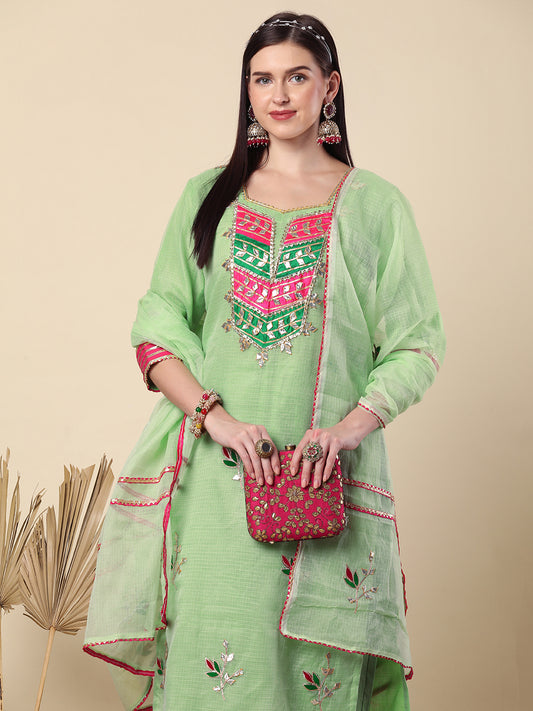 Solid Gota Patti Embroidered Straight Cut Kurta...