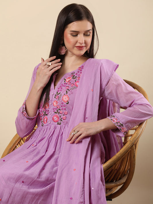 Solid Floral Embroidered Anarkali Flared Kurta with...