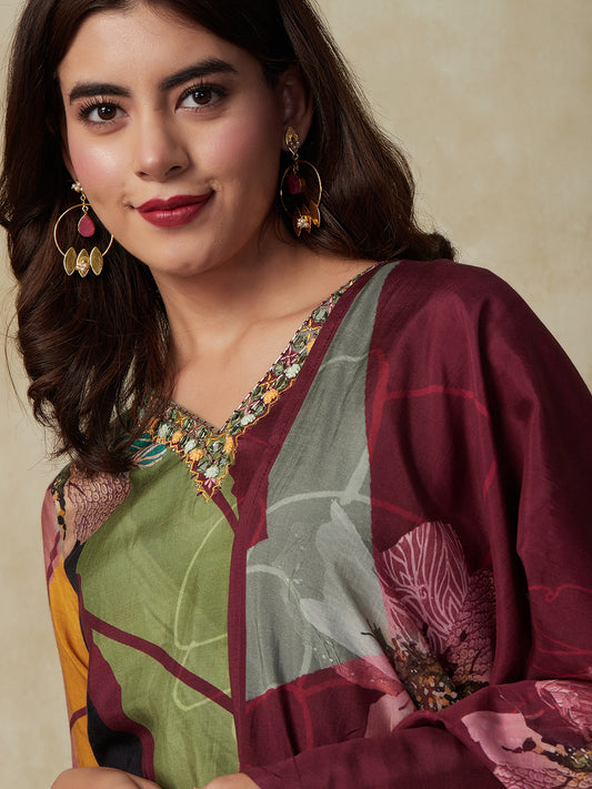 Abstract Floral Printed & Embroidered Straight Kurta...