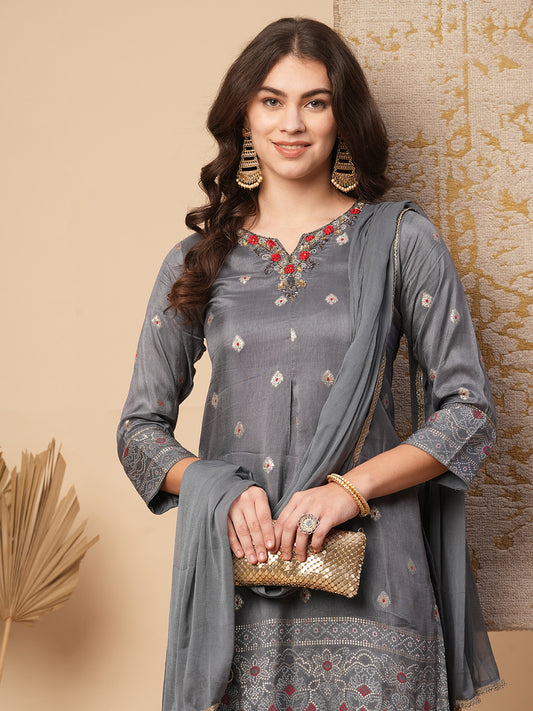 Ethnic Woven & Hand Embroidered Straight Fit...