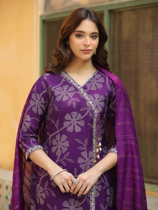 MRP (Inclusive of all taxes)Regular price ₹ 1,229.00₹ 1,229.00 Regular priceUnit price / per₹ 6,399.00Sale priceS M L XL 2XL 3XL add to cartSale{"id":7370811965526,"title":"Bandhani Printed \u0026 Embroidered Straight Kurta with Pant \u0026 Dupatta - Purple","handle":"bandhani-printed-embroidered-straight-kurta-with-pant-dupatta-purple","description":"\u003ch1\u003eHighlights\u003c\/h1\u003e\n\u003cp\u003e\u003cbr\u003e-Straight Fit Kurta\u003cbr\u003e-Bandhani Prints all over\u003cbr\u003e-Comes with Solid Matching Dupatta\u003c\/p\u003e\n\u003ch1\u003eFabric \u0026amp; Colour\u003c\/h1\u003e\n\u003cp\u003e\u003cbr\u003eTop Colour: Purple\u003cbr\u003eTop Fabric: Muslin Silk\u003cbr\u003eBottom Colour: Purple\u003cbr\u003eBottom Fabric: Poly Silk\u003cbr\u003eDupatta Colour: Purple\u003cbr\u003eDupatta Fabric: Poly Chanderi\u003c\/p\u003e\n\u003ch1\u003eSpecifications\u003c\/h1\u003e\n\u003cp\u003e\u003cbr\u003eTop Design: Ethnic print, Bandhini Print\u003cbr\u003eTop Craft: Embroidery, Plain and Prints\u003cbr\u003eTop Shape: Straight\u003cbr\u003eNeck: V-Neck\u003cbr\u003eSleeve Length: Three-Quarter Sleeves\u003cbr\u003eTop Length: Calf Length\u003cbr\u003eHemline: Straight\u003cbr\u003eSlit: Side Slits\u003c\/p\u003e\n\u003cp\u003eBottom Type: Trousers\u003cbr\u003eBottom Closure: Slip-On\u003cbr\u003eWaistband: Partially Elasticated\u003c\/p\u003e\n\u003cp\u003eDupatta Pattern: Self Design, Solid\u003cbr\u003eDupatta Border: Solid\u003c\/p\u003e\n\u003cp\u003eWash Care: Hand Wash\u003c\/p\u003e\n\u003cp\u003eMeasurement (in inches)\u003cbr\u003eLength – 45, Sleeves – 17,\u003cbr\u003eBottom – 40\u003c\/p\u003e\n\u003cp\u003eModel’s Height: 5’7”. Wearing Size S.\u003c\/p\u003e\n\u003ch1\u003eProduct Information\u003c\/h1\u003e\n\u003cp\u003e\u003cbr\u003eManufactured\/Packed\/Marketed By:\u003cbr\u003eFashor Lifestyle Pvt. Ltd.\u003cbr\u003e28\/30, Sudarshanpura Industrial Area,\u003cbr\u003eJaipur - 302006.\u003cbr\u003eCountry of Origin: India\u003c\/p\u003e\n\u003c!----\u003e","published_at":"2025-09-14T19:23:20+05:30","created_at":"2024-08-01T09:53:59+05:30","vendor":"FASHOR","type":"3P Kurta Set","tags":["1001-2000","2001-3000","24680","2XL","All Styles","bs","casualwear","colour_purple","craft_embroidery","craft_plain-and-prints","design_bandhini-print","design_ethnic-print","fabric_muslin-silk","festivewear","KURTI","kurtis","M","meta-size-chart-","mf","rakhi","S","shape_straight"],"price":122900,"price_min":122900,"price_max":122900,"available":true,"price_varies":false,"compare_at_price":639900,"compare_at_price_min":639900,"compare_at_price_max":639900,"compare_at_price_varies":false,"variants":[{"id":41819464466518,"title":"S","option1":"S","option2":null,"option3":null,"sku":"36-STB24680F4FS","requires_shipping":true,"taxable":false,"featured_image":{"id":33724227878998,"product_id":7370811965526,"position":4,"created_at":"2024-11-27T15:52:03+05:30","updated_at":"2025-06-09T20:21:30+05:30","alt":null,"width":1080,"height":1440,"src":"\/\/fashor.com\/cdn\/shop\/files\/28780_11.jpg?v=1749480690","variant_ids":[41653232762966,41653232795734,41653232828502,41653232861270,41819464466518,41819464499286]},"available":true,"name":"Bandhani Printed \u0026 Embroidered Straight Kurta with Pant \u0026 Dupatta - Purple - S","public_title":"S","options":["S"],"price":122900,"weight":0,"compare_at_price":639900,"inventory_quantity":9,"inventory_management":"shopify","inventory_policy":"deny","barcode":null,"featured_media":{"alt":null,"id":26239698960470,"position":4,"preview_image":{"aspect_ratio":0.75,"height":1440,"width":1080,"src":"\/\/fashor.com\/cdn\/shop\/files\/28780_11.jpg?v=1749480690"}},"requires_selling_plan":false,"selling_plan_allocations":[],"quantity_rule":{"min":1,"max":null,"increment":1}},{"id":41653232762966,"title":"M","option1":"M","option2":null,"option3":null,"sku":"38-STB24680F4FS","requires_shipping":true,"taxable":false,"featured_image":{"id":33724227878998,"product_id":7370811965526,"position":4,"created_at":"2024-11-27T15:52:03+05:30","updated_at":"2025-06-09T20:21:30+05:30","alt":null,"width":1080,"height":1440,"src":"\/\/fashor.com\/cdn\/shop\/files\/28780_11.jpg?v=1749480690","variant_ids":[41653232762966,41653232795734,41653232828502,41653232861270,41819464466518,41819464499286]},"available":true,"name":"Bandhani Printed \u0026 Embroidered Straight Kurta with Pant \u0026 Dupatta - Purple - M","public_title":"M","options":["M"],"price":122900,"weight":0,"compare_at_price":639900,"inventory_quantity":3,"inventory_management":"shopify","inventory_policy":"deny","barcode":null,"featured_media":{"alt":null,"id":26239698960470,"position":4,"preview_image":{"aspect_ratio":0.75,"height":1440,"width":1080,"src":"\/\/fashor.com\/cdn\/shop\/files\/28780_11.jpg?v=1749480690"}},"requires_selling_plan":false,"selling_plan_allocations":[],"quantity_rule":{"min":1,"max":null,"increment":1}},{"id":41653232795734,"title":"L","option1":"L","option2":null,"option3":null,"sku":"40-STB24680F4FS","requires_shipping":true,"taxable":false,"featured_image":{"id":33724227878998,"product_id":7370811965526,"position":4,"created_at":"2024-11-27T15:52:03+05:30","updated_at":"2025-06-09T20:21:30+05:30","alt":null,"width":1080,"height":1440,"src":"\/\/fashor.com\/cdn\/shop\/files\/28780_11.jpg?v=1749480690","variant_ids":[41653232762966,41653232795734,41653232828502,41653232861270,41819464466518,41819464499286]},"available":false,"name":"Bandhani Printed \u0026 Embroidered Straight Kurta with Pant \u0026 Dupatta - Purple - L","public_title":"L","options":["L"],"price":122900,"weight":0,"compare_at_price":639900,"inventory_quantity":0,"inventory_management":"shopify","inventory_policy":"deny","barcode":null,"featured_media":{"alt":null,"id":26239698960470,"position":4,"preview_image":{"aspect_ratio":0.75,"height":1440,"width":1080,"src":"\/\/fashor.com\/cdn\/shop\/files\/28780_11.jpg?v=1749480690"}},"requires_selling_plan":false,"selling_plan_allocations":[],"quantity