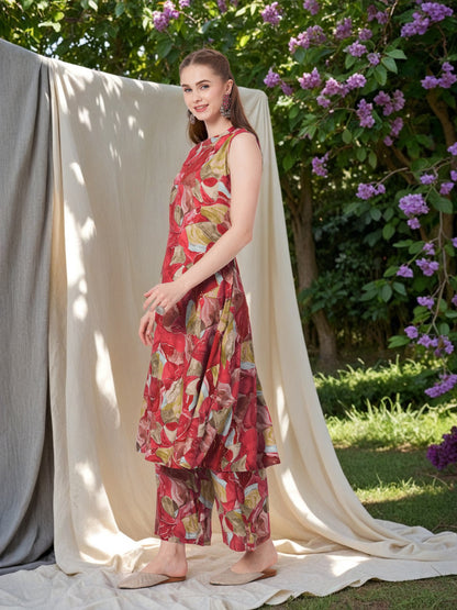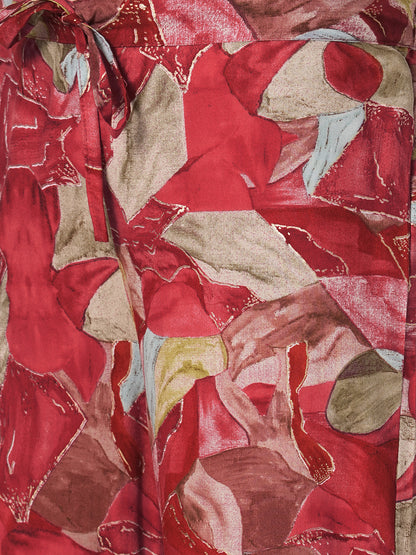 Abstract Floral Foil Printed A-Line Flared Co-ord Set - Pink