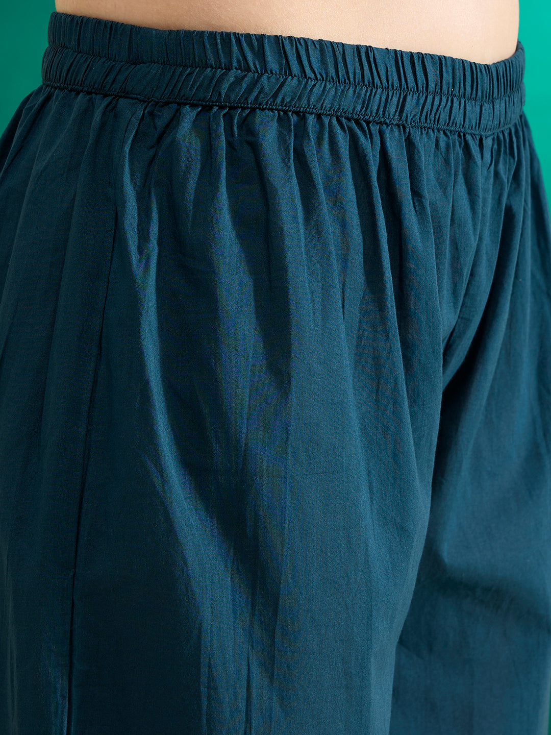 Abstract Floral Printed A-Line Fit Co-ord Set - Teal