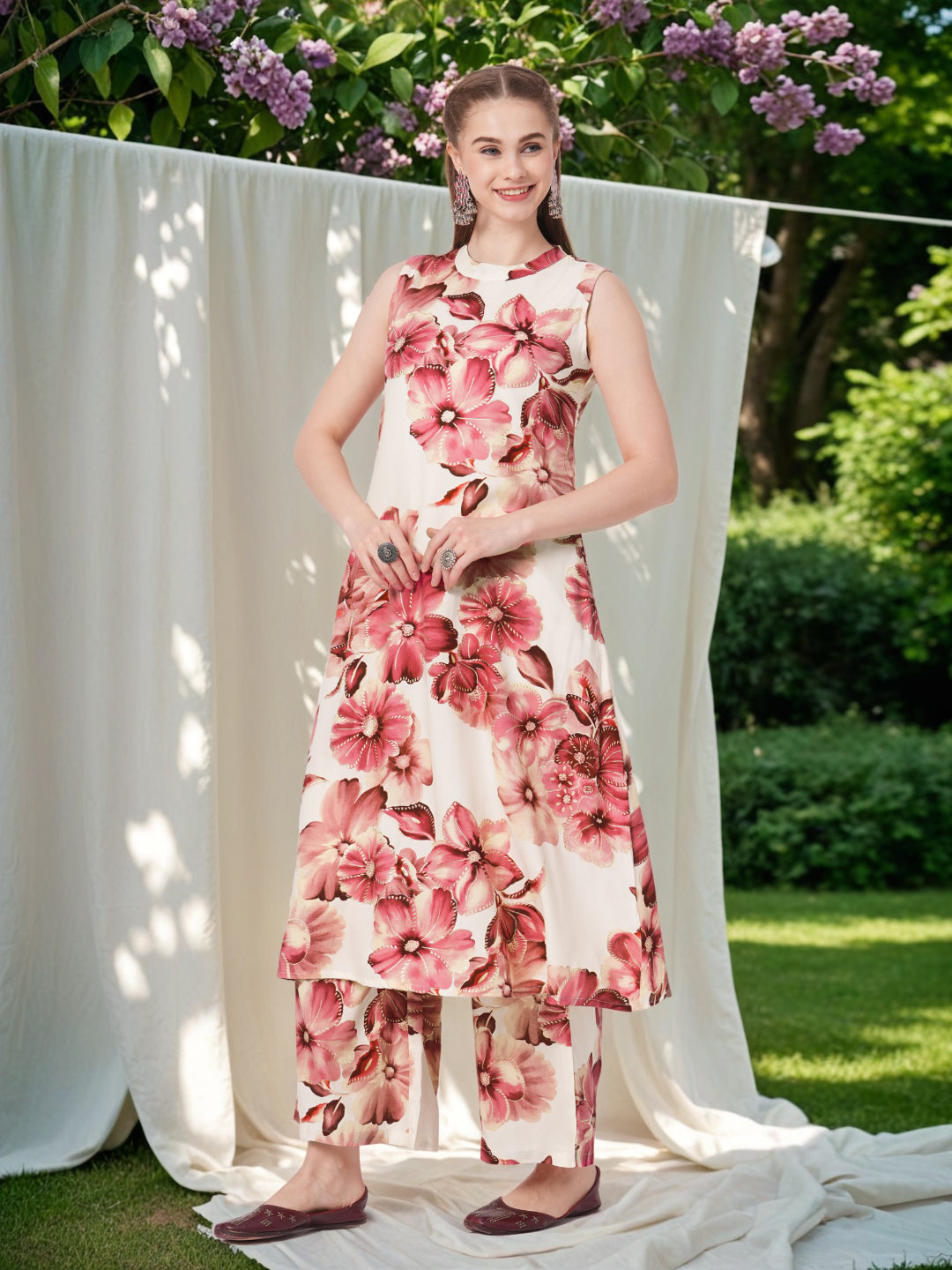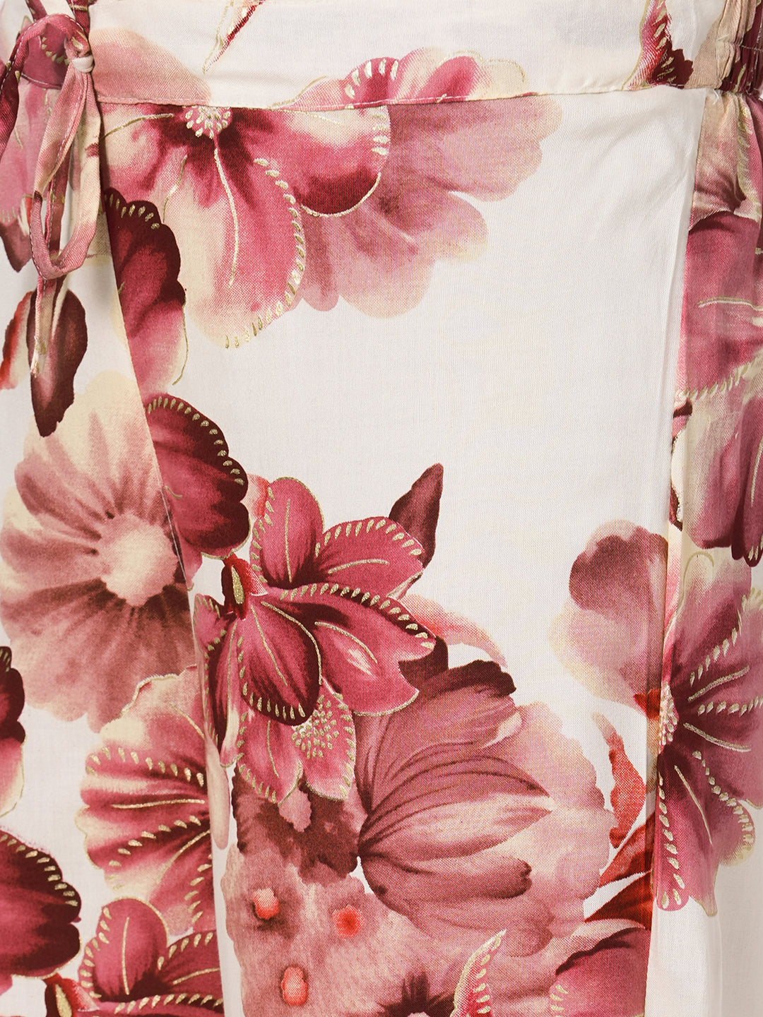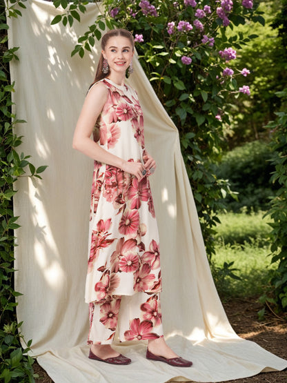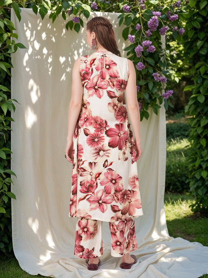 Abstract Floral Printed A-Line Flared Co-ord Set - Pink