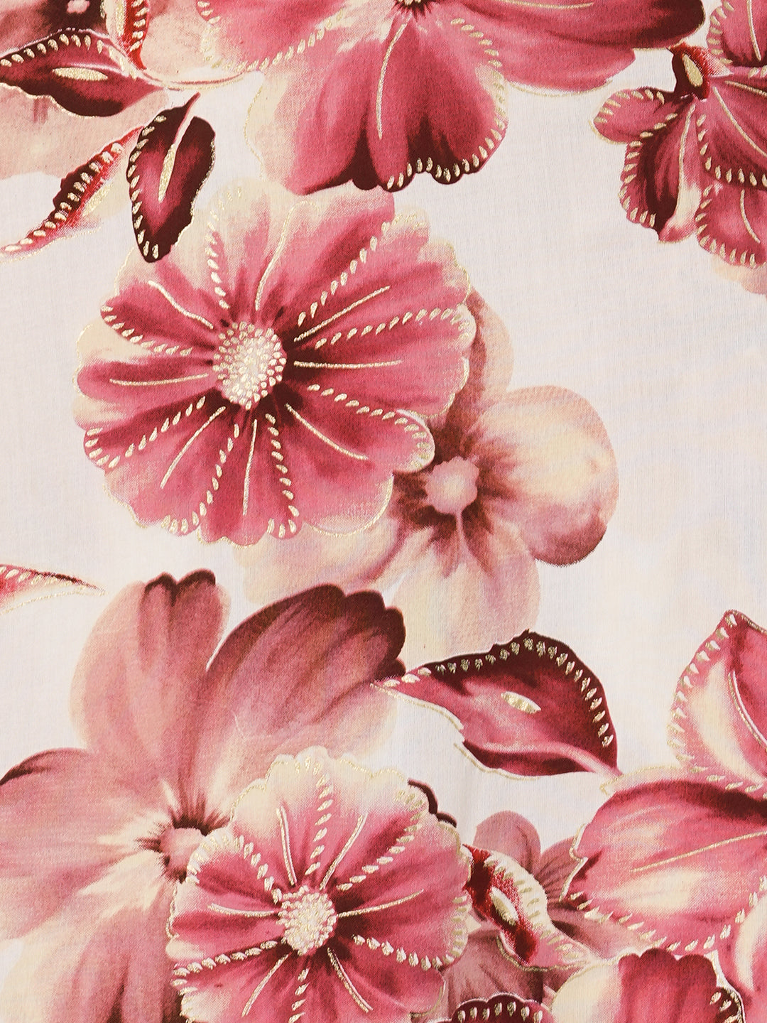 Step into effortless elegance with the Abstract Floral Foil Printed A-Line Flared Co-ord Set in serene Pink. Made from luxurious viscose rayon, this set combines contemporary floral and abstract prints with a touch of metallic foil for a subtle shine. The flared, calf-length A-line silhouette creates a flattering shape, while the band collar adds a modern twist.Detachable Sleeves inside the Garment. Paired with matching palazzos featuring a partially elasticated drawstring waist, this co-ord set offers both comfort and style for your everyday or office wear. Hand wash for long-lasting beauty and effortless chic..
