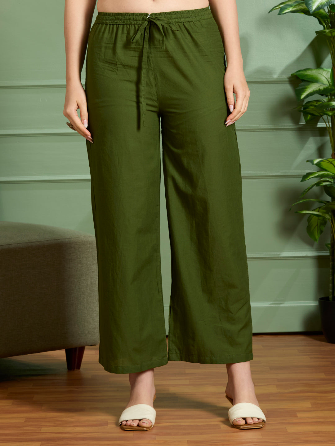 Refresh your festive wardrobe with this graceful Abstract Floral Printed A-Line Kurta Set in a soothing green tone. Crafted from breathable cotton, the kurta features a flattering V-neckline and delicate threadwork detailing that adds subtle elegance. It’s paired with a solid palazzo for effortless comfort and a beautifully printed dupatta that brings a vibrant, artistic flair to the ensemble — perfect for daytime celebrations or casual festive gatherings.