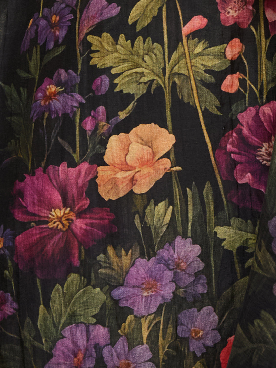 Abstract Floral Printed Embroidered Kurta with Pant & Dupatta - Black
