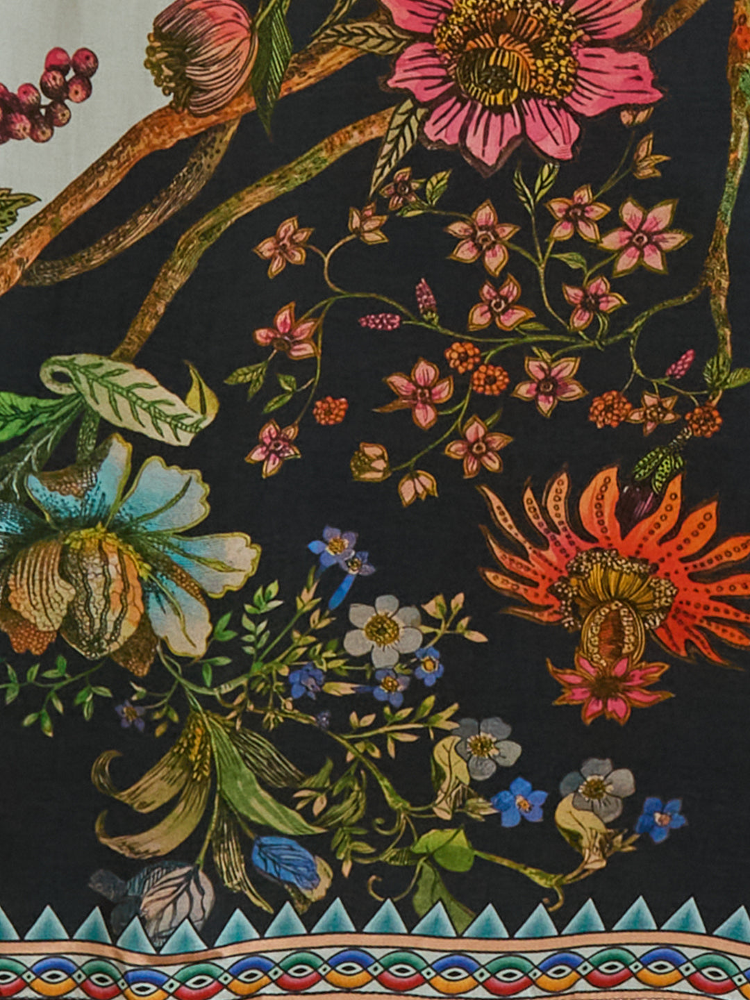 Abstract Floral Printed Embroidered Straight Fit Kurta with Pant and Dupatta - Black