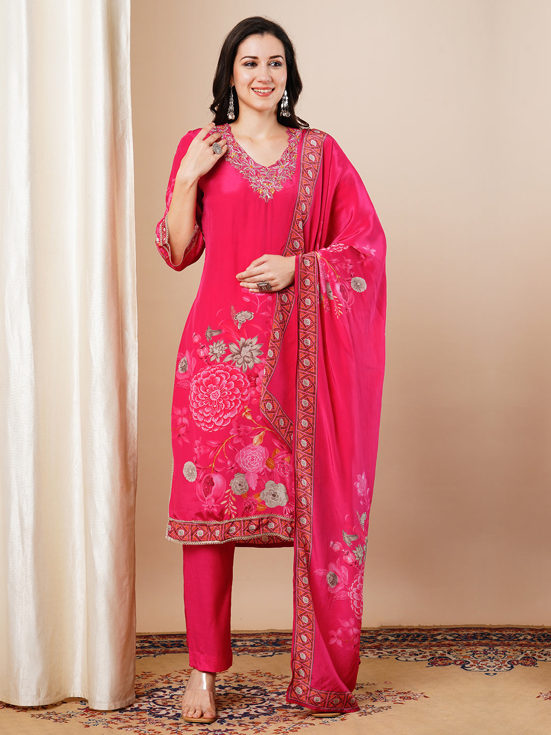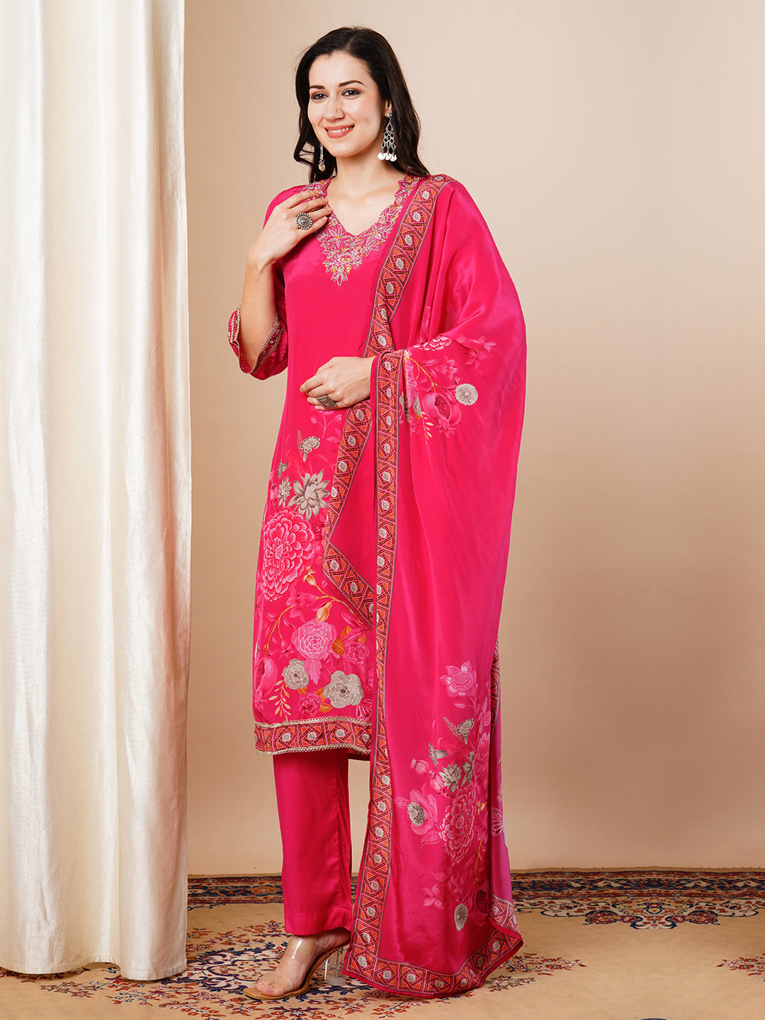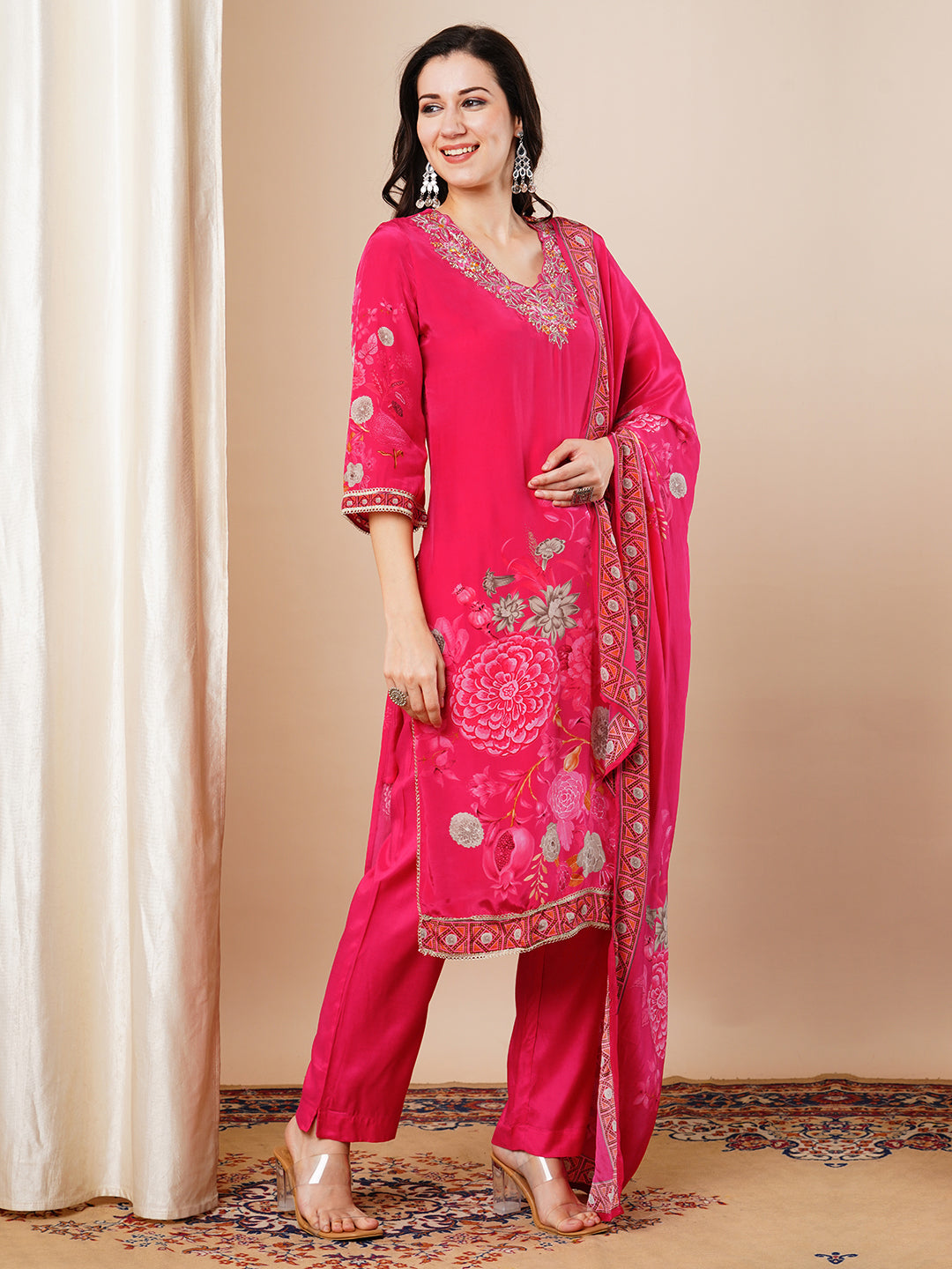 -Comes with Abstract Floral Printed Dupatta