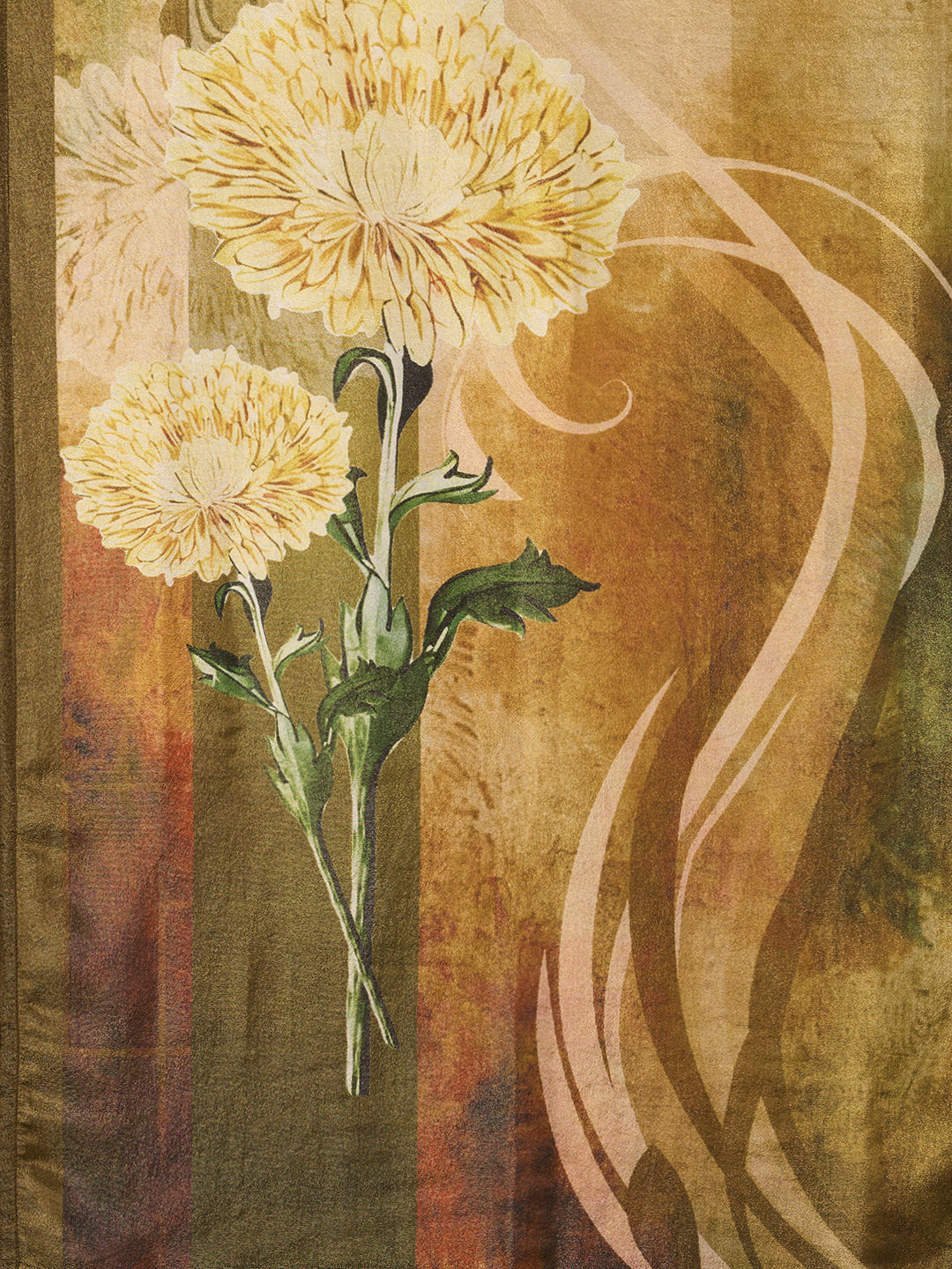 Abstract Floral Printed Embroidered Straight Fit Tissue Kurta with Pant and Dupatta - Gold