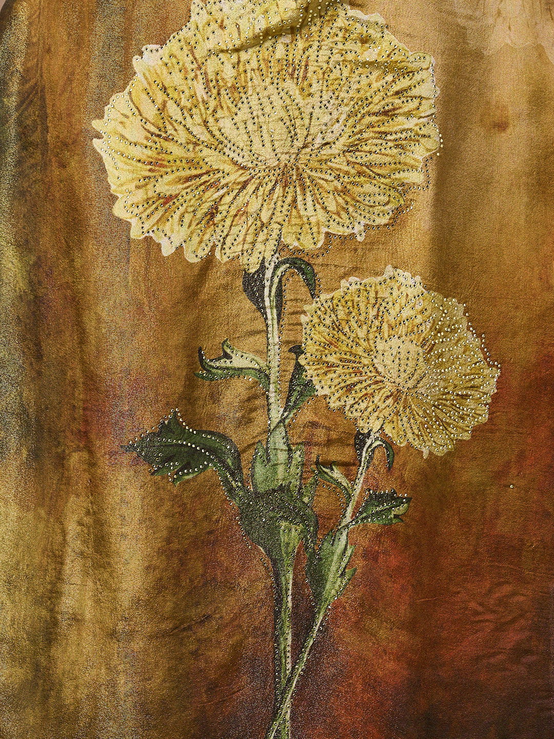 Make a graceful statement in this Gold Abstract Floral Printed Straight Fit Kurta set. Crafted from lightweight tissue fabric, it features a V-neckline adorned with delicate bead embroidery for a hint of sparkle. Paired with a solid pant and a matching tissue printed dupatta, this ensemble is perfect for festive elegance with a contemporary twist.