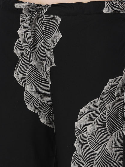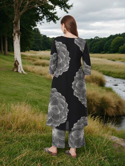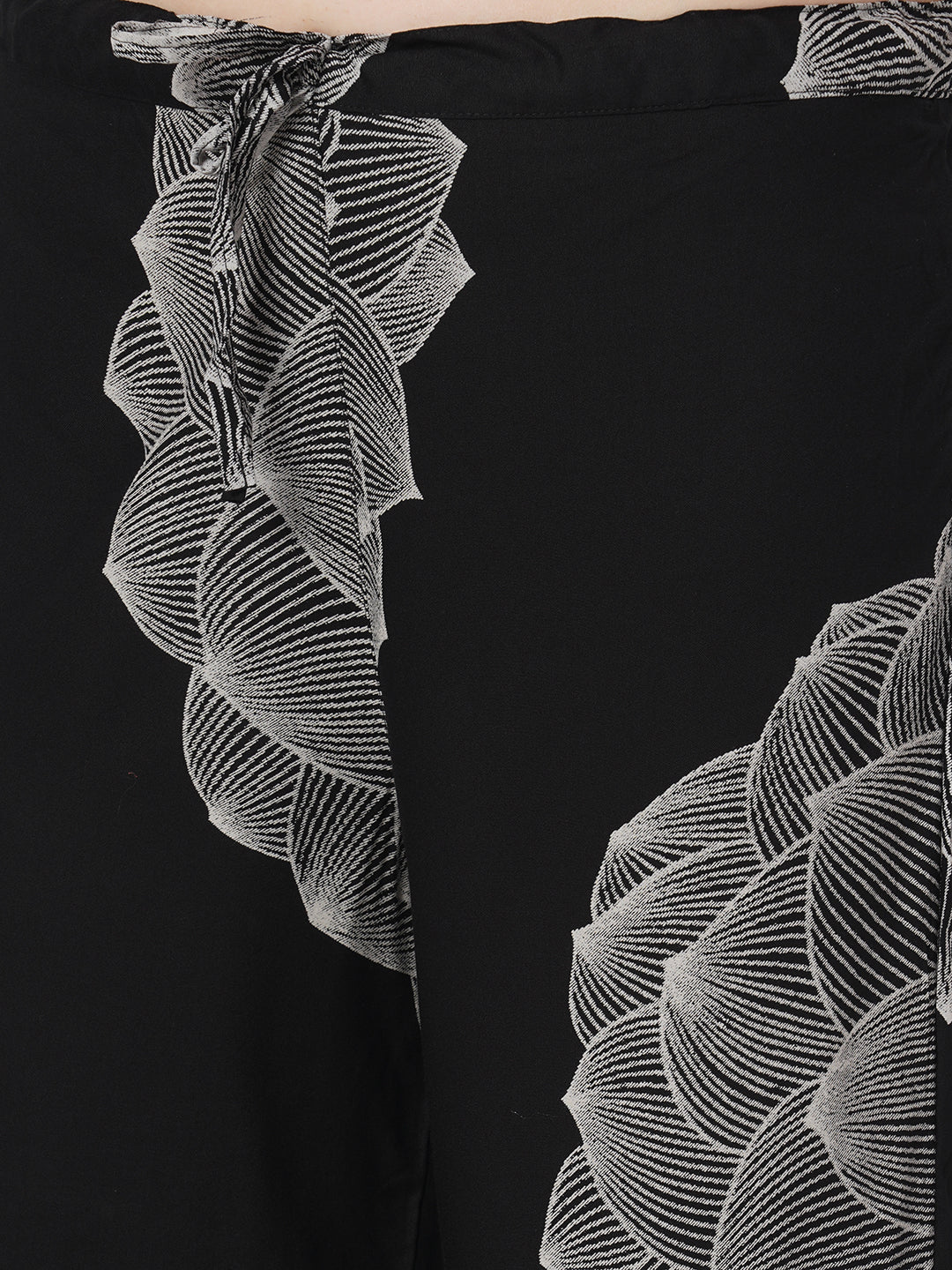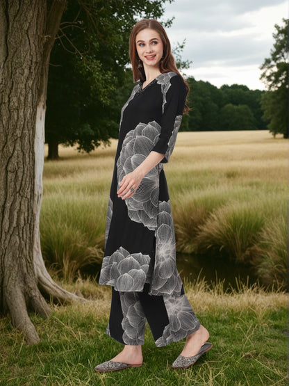 Abstract Floral Printed Straight Fit Co-ord Set - Black