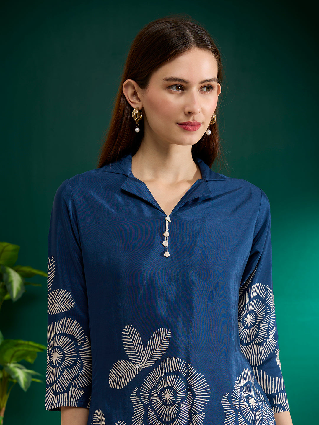 Abstract Floral Printed Straight Fit Co-ord Set - Blue