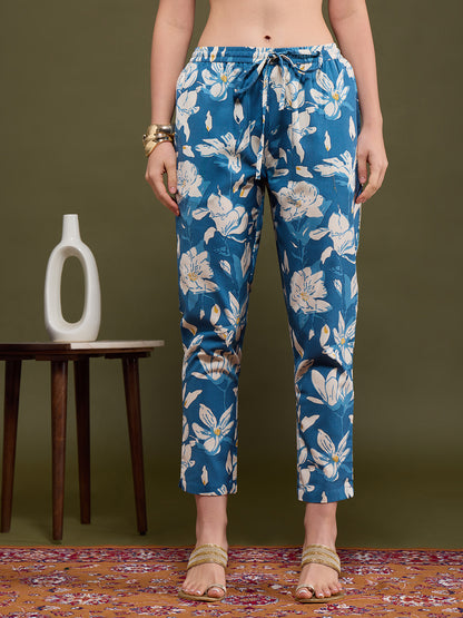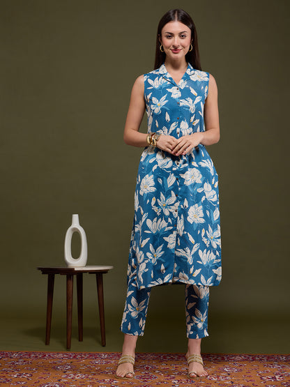 Abstract Floral Printed Straight Fit Co-ord Set - Blue