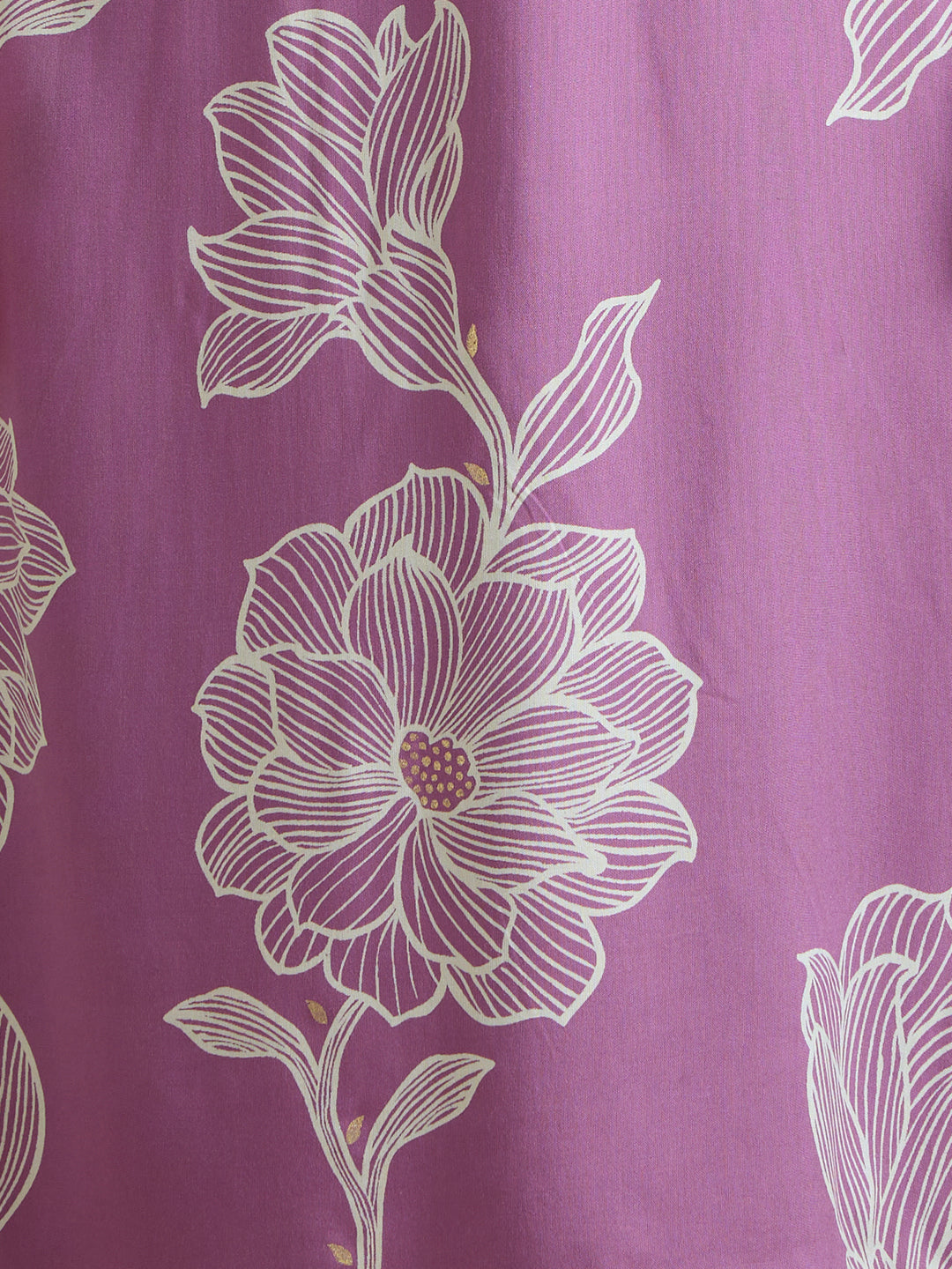 Abstract Floral Printed Straight Fit Co-ord Set - Purple