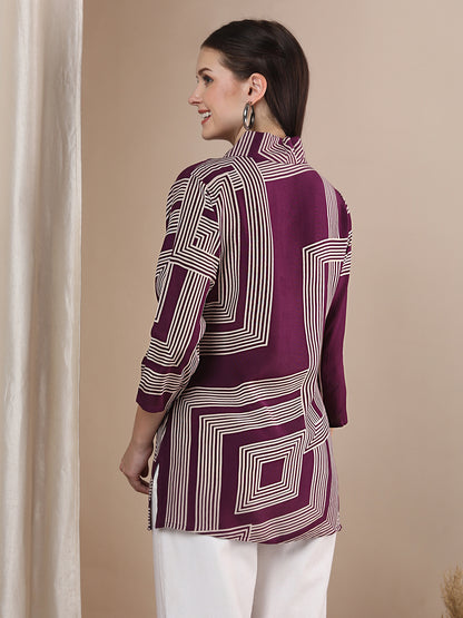 Abstract Geometric Printed Straight Fit Shirt - Purple