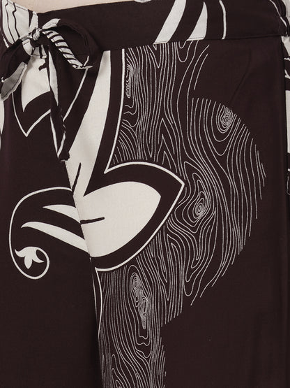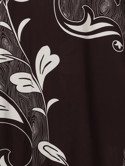 Abstract Leaf Printed Straight Fit Co-ord Set - Burgundy