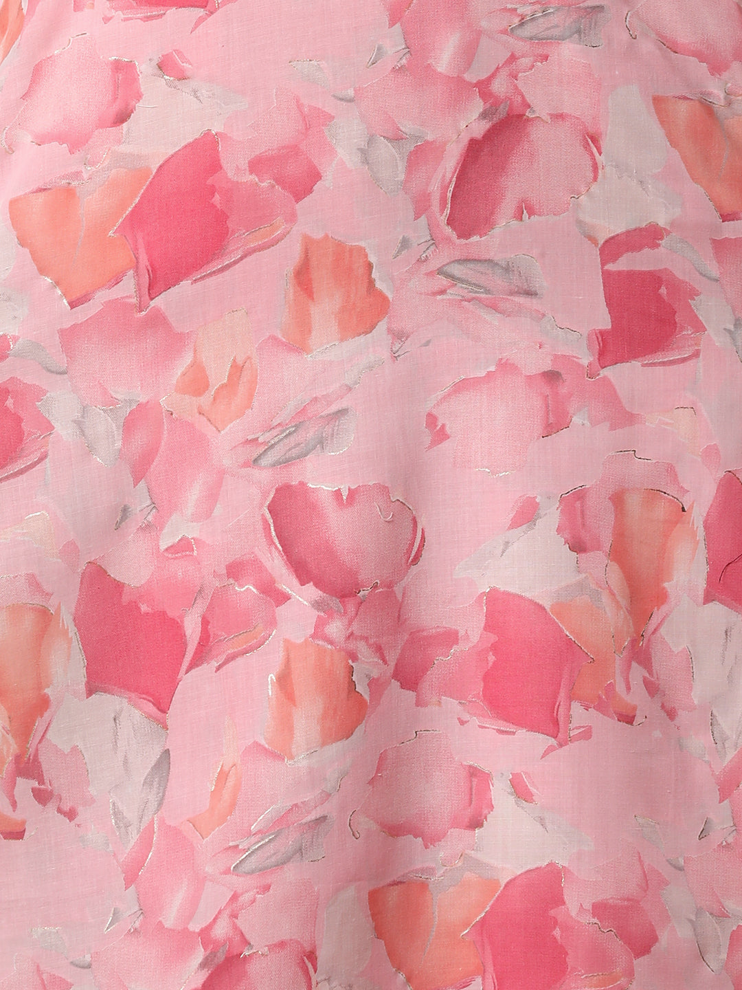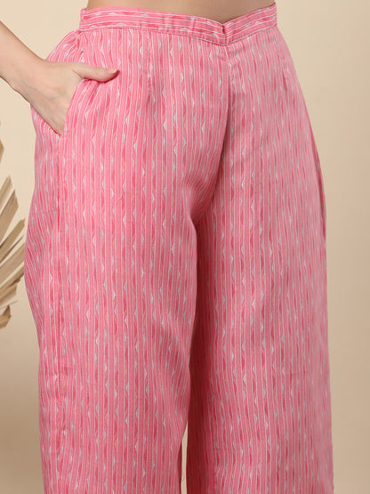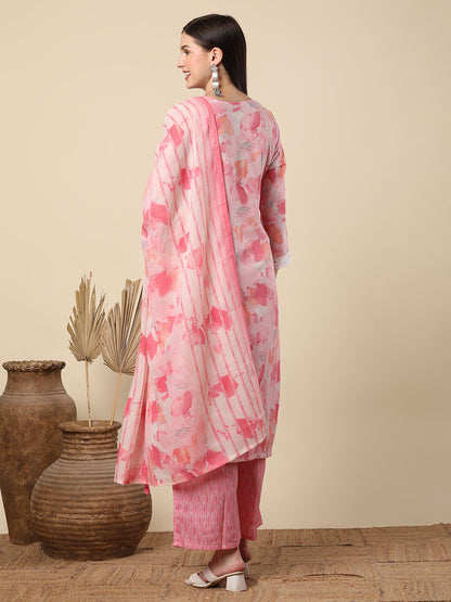 Abstract Printed & Mirror Embroidered Straight Kurta with Palazzo & Dupatta - Pink
