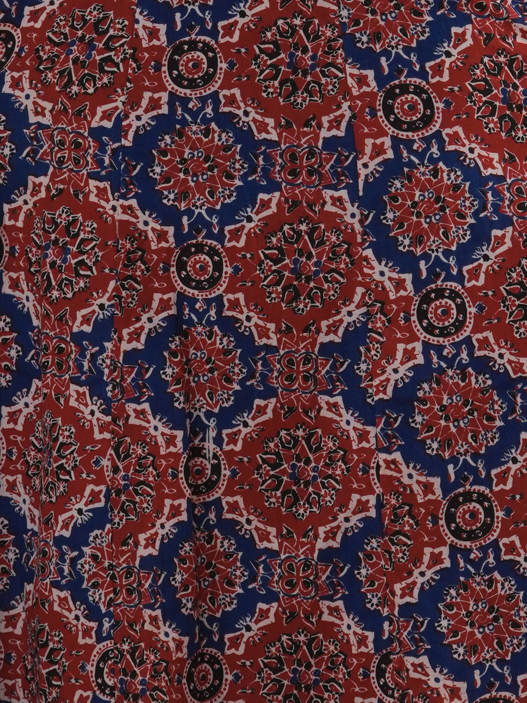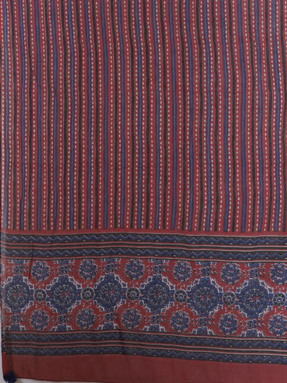 Ajrakh Printed & Embroidered Anarkali Flared Kurta with Pant & Dupatta - Maroon