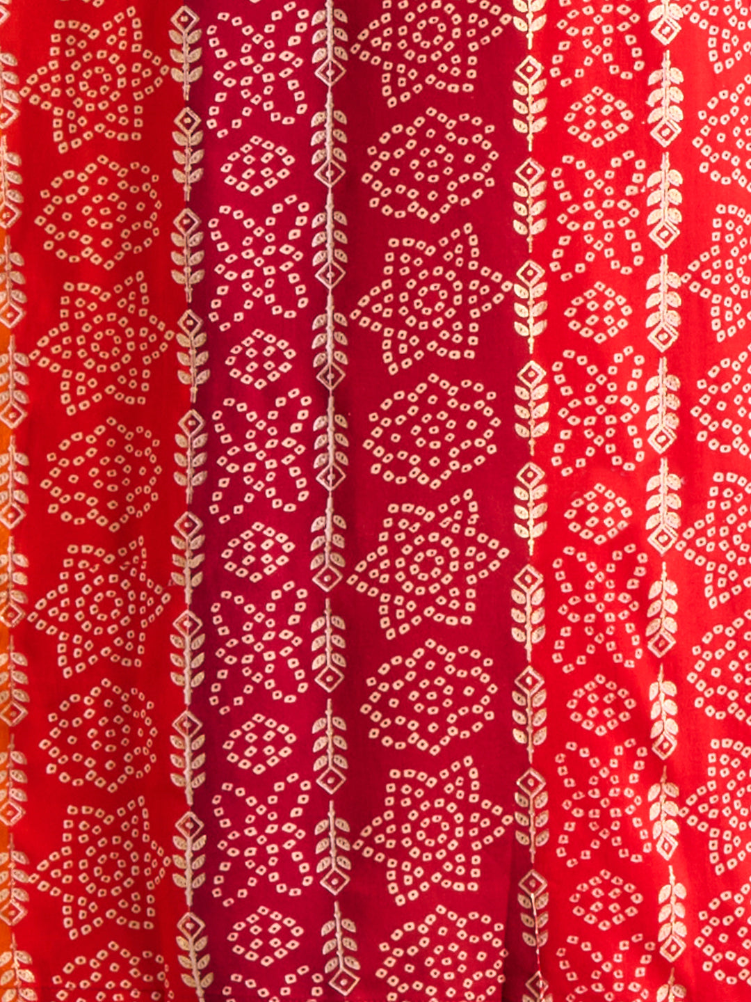 Bandhani Printed Embroidered Straight Fit Kurta - Multi