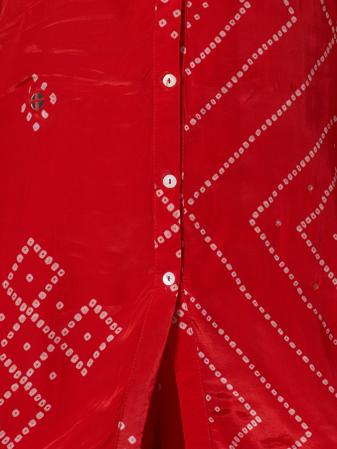 Bandhani Printed Straight Fit Co-ord Set - Pink – Crafted in soft crepe fabric, this vibrant set features a classic shirt collar and a timeless straight fit, blending traditional charm with contemporary elegance.