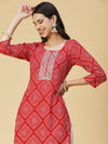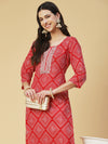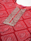 Bandhani Printed Zari & Sequins Embroidered Kurta - Red