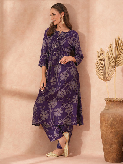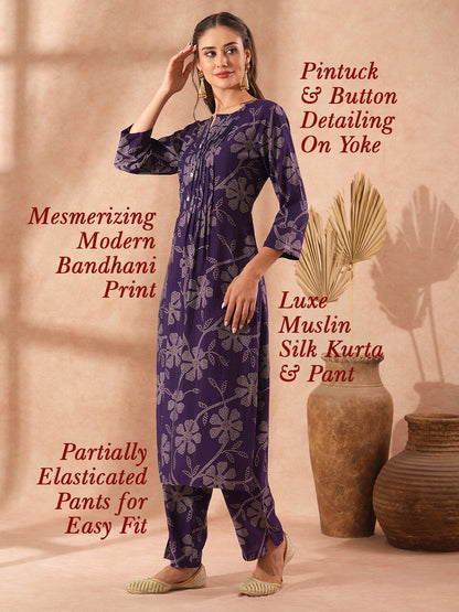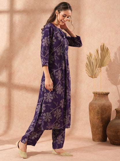Ethnic Bandhani Printed A-Line Co-ord Set - Purple