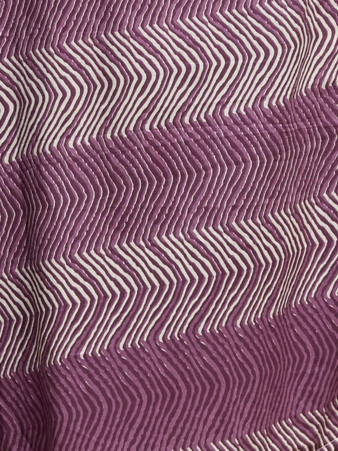 Ethnic Floral Printed Cotton A-Line Co-ord Set - Purple