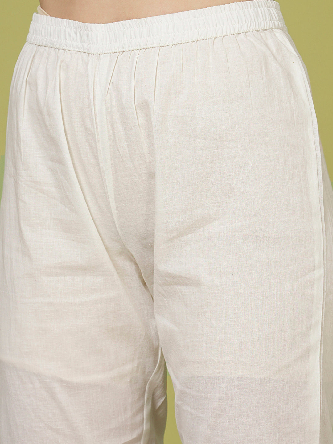 Elevate your ethnic wardrobe with this stunning White Ethnic Floral Printed & Embroidered A-Line Pleated Kurta Set, crafted in soft, breathable cotton. Featuring a flattering V-neckline adorned with delicate sequin embroidery, this elegant kurta boasts intricate floral prints and graceful pleats for a flowing silhouette. Paired with matching cotton pants and a pure cotton printed dupatta, this ensemble blends traditional charm with modern finesse—perfect for festive gatherings, daytime celebrations, or elegant evening affairs.