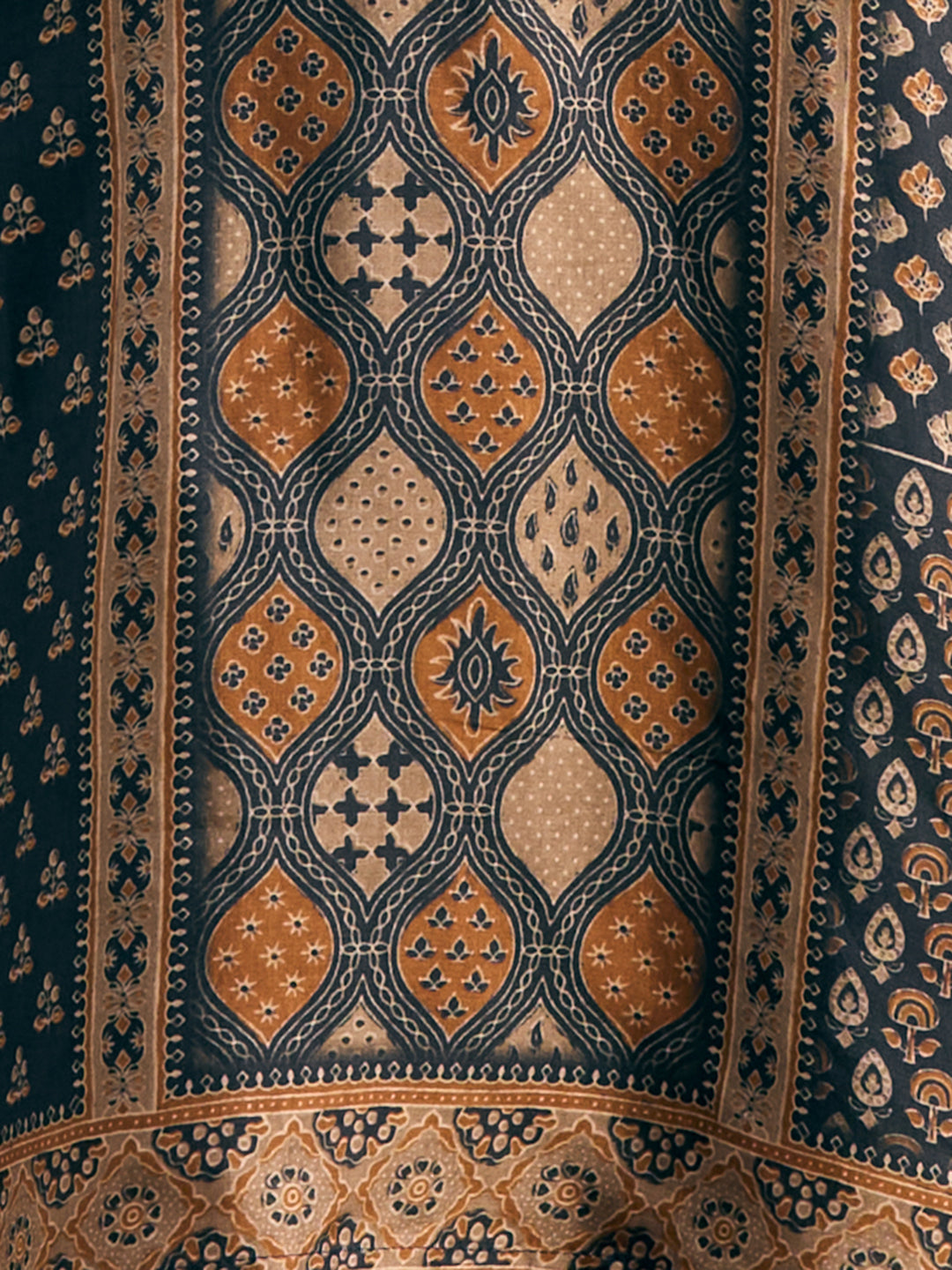 Make a statement in this Ethnic Floral Printed Embroidered Straight Fit Kurta Set in a classic black hue. Crafted from luxurious muslin silk, it features a round neckline and intricate cutdana and sequin work on the yoke for a touch of festive sparkle. Paired with a solid pant and a beautifully printed dupatta, this ensemble blends traditional elegance with modern grace—perfect for special occasions.
