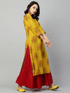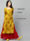 Ethnic Floral Printed & Kantha Embroidered Straight Kurta - Mustard