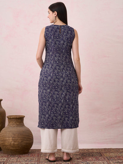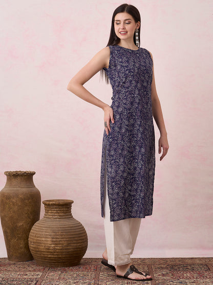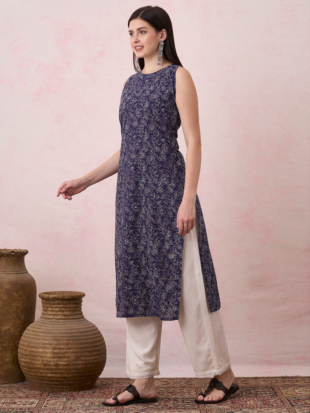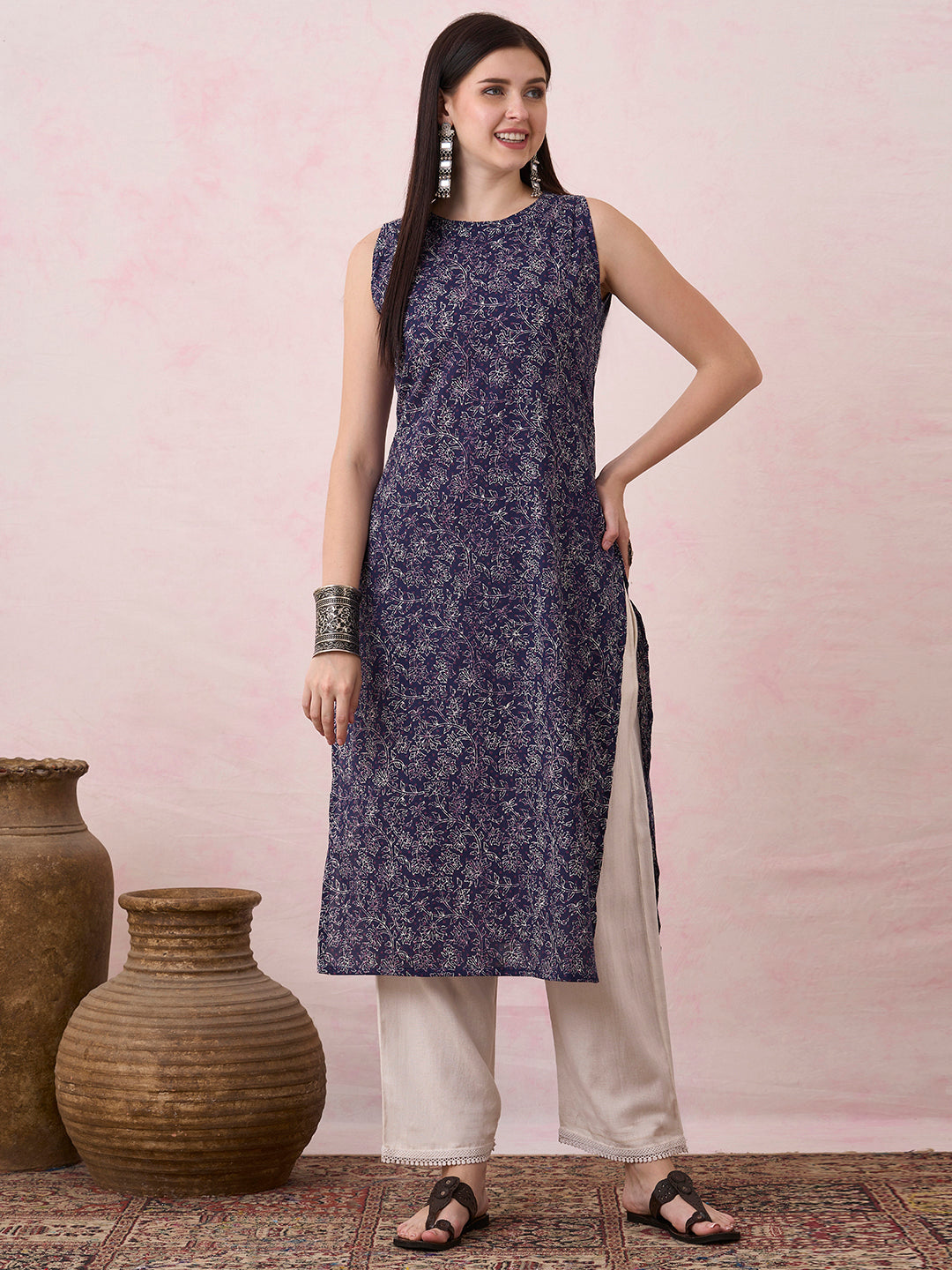 Featuring a classic round neckline, this kurta showcases vibrant ethnic floral prints on a sleek straight-fit silhouette, offering effortless elegance and all-day comfort. Simple, stylish, and perfect for any occasion.