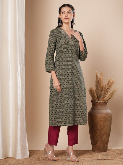 Floral Patchwork Embroidered A-Line Flared Kurta -...