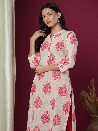 Ethnic Floral Printed Straight Fit Kurta - Off White