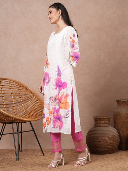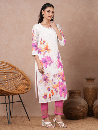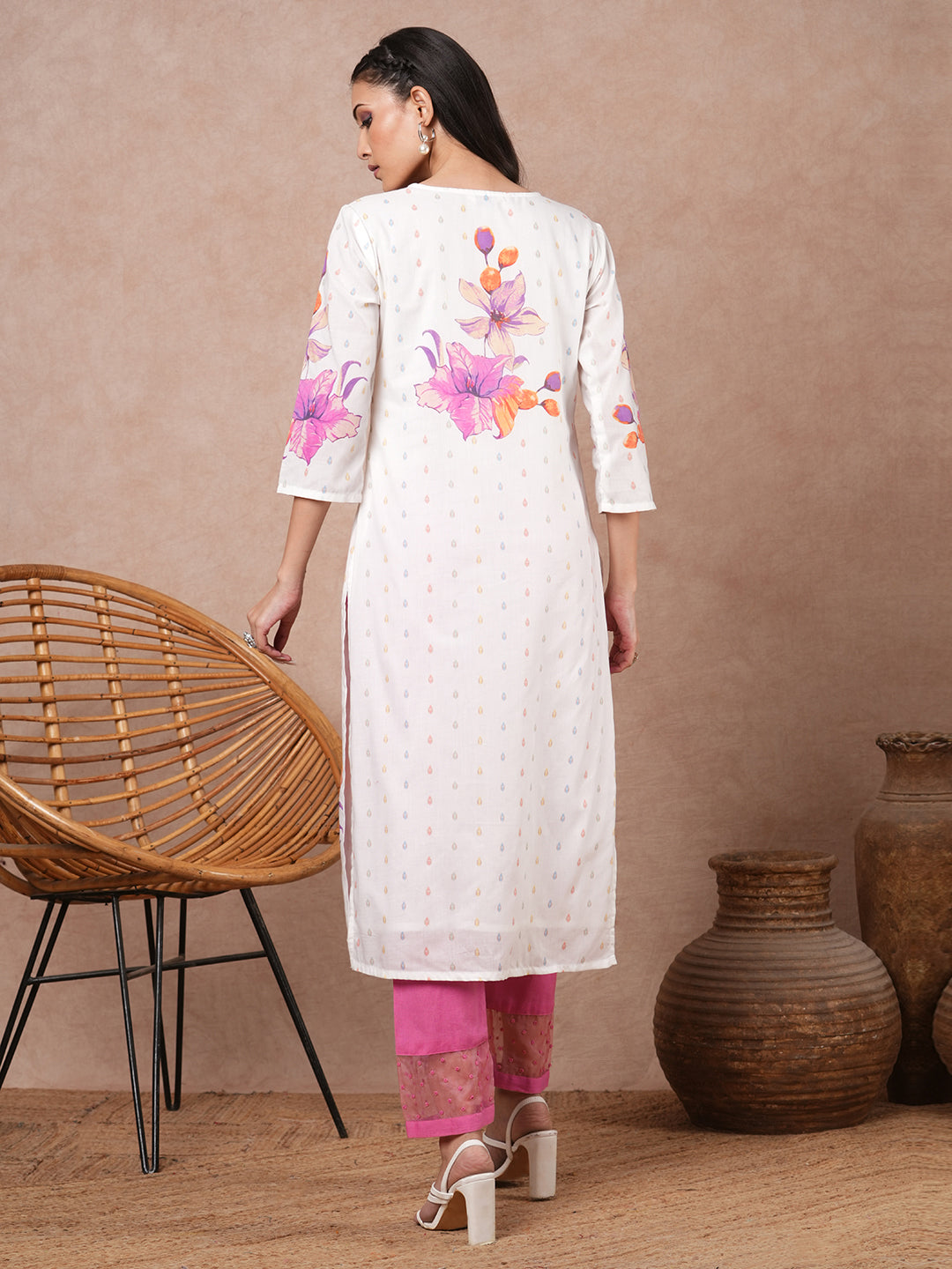 Floral Patchwork Embroidered A-Line Flared Kurta -...