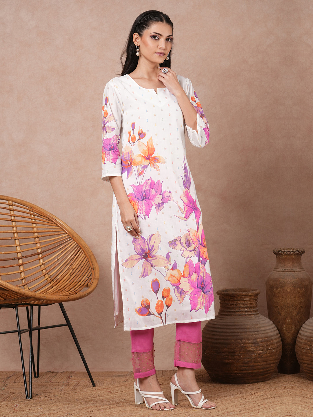 MRP (Inclusive of all taxes)Regular price ₹ 1,049.00₹ 1,049.00 Regular priceUnit price / per₹ 2,699.00Sale priceSale{"id":7668568031318,"title":"Floral Printed Embroidered Straight Fit Kurta - Magenta","handle":"floral-printed-embroidered-straight-fit-kurta-magenta-4","description":"\u003ch1\u003eHighlights\u003c\/h1\u003e\n\u003cp\u003e\u003cbr\u003e\u003cbr\u003e-Brighten up your look with this Floral Printed Embroidered Straight Fit Kurta in a vibrant Magenta shade. Crafted from breathable cotton fabric, it features intricate embroidery over delicate floral prints for a refined yet lively appeal. The round - neckline adds a flattering touch, making it perfect for festive days or elegant everyday wear.\u003c\/p\u003e\n\u003ch1\u003e\n\u003cbr\u003eFabric \u0026amp; Colour\u003c\/h1\u003e\n\u003cp\u003e\u003cbr\u003eColour: Magenta\u003cbr\u003eFabric: Cotton\u003c\/p\u003e\n\u003ch1\u003eSpecifications\u003c\/h1\u003e\n\u003cp\u003e\u003cbr\u003eDesign: Floral print, Ethnic print, Solid\u003cbr\u003eCraft: Embroidery, Plain and Prints\u003cbr\u003eShape: Straight\u003cbr\u003eNeck: Round Neckline\u003cbr\u003eSleeve Length: Three-Quarter Sleeves\u003cbr\u003eTop Length: Knee Length\u003cbr\u003eHemline: Straight\u003cbr\u003eSlit: Side Slits\u003c\/p\u003e\n\u003cp\u003eWash Care: Hand Wash\u003c\/p\u003e\n\u003cp\u003eLength (in inches)\u003cbr\u003eKurta – 45, Sleeves – 16\u003c\/p\u003e\n\u003cp\u003eModel’s Height: 5’7”. Wearing Size S.\u003c\/p\u003e\n\u003ch1\u003eProduct Information\u003c\/h1\u003e\n\u003cp\u003e\u003cbr\u003eManufactured\/Packed\/Marketed By:\u003cbr\u003eFashor Lifestyle Pvt. Ltd.\u003cbr\u003e28\/30, Sudarshanpura Industrial Area,\u003cbr\u003eJaipur - 302006.\u003cbr\u003eCountry of Origin: India\u003c\/p\u003e","published_at":"2025-11-25T10:21:33+05:30","created_at":"2025-10-04T15:25:27+05:30","vendor":"FASHOR","type":"Kurtas","tags":["1001-2000","2XL","33125","All Styles","bs","colour_magenta","craft_embroidery","craft_plain-and-prints","design_ethnic-print","design_floral-print","design_solid","fabric_cotton","KURTI","kurtis","L","M","meta-size-chart-","now-trending","shape_straight","single-kurta","workwear","XL"],"price":104900,"price_min":104900,"price_max":104900,"available":true,"price_varies":false,"compare_at_price":269900,"compare_at_price_min":269900,"compare_at_price_max":269900,"compare_at_price_varies":false,"variants":[{"id":43432834465878,"title":"M","option1":"M","option2":null,"option3":null,"sku":"38-KA033125I5FS","requires_shipping":true,"taxable":false,"featured_image":{"id":35335785676886,"product_id":7668568031318,"position":1,"created_at":"2025-10-04T15:25:57+05:30","updated_at":"2025-10-04T15:25:59+05:30","alt":null,"width":1080,"height":1440,"src":"\/\/fashor.com\/cdn\/shop\/files\/32286_1.jpg?v=1759571759","variant_ids":[43432834465878,43432834498646,43432834531414,43432834564182]},"available":true,"name":"Floral Printed Embroidered Straight Fit Kurta - Magenta - M","public_title":"M","options":["M"],"price":104900,"weight":0,"compare_at_price":269900,"inventory_quantity":20,"inventory_management":"shopify","inventory_policy":"deny","barcode":"","featured_media":{"alt":null,"id":27446575104086,"position":1,"preview_image":{"aspect_ratio":0.75,"height":1440,"width":1080,"src":"\/\/fashor.com\/cdn\/shop\/files\/32286_1.jpg?v=1759571759"}},"requires_selling_plan":false,"selling_plan_allocations":[],"quantity_rule":{"min":1,"max":null,"increment":1}},{"id":43432834498646,"title":"L","option1":"L","option2":null,"option3":null,"sku":"40-KA033125I5FS","requires_shipping":true,"taxable":false,"featured_image":{"id":35335785676886,"product_id":7668568031318,"position":1,"created_at":"2025-10-04T15:25:57+05:30","updated_at":"2025-10-04T15:25:59+05:30","alt":null,"width":1080,"height":1440,"src":"\/\/fashor.com\/cdn\/shop\/files\/32286_1.jpg?v=1759571759","variant_ids":[43432834465878,43432834498646,43432834531414,43432834564182]},"available":true,"name":"Floral Printed Embroidered Straight Fit Kurta - Magenta - L","public_title":"L","options":["L"],"price":104900,"weight":0,"compare_at_price":269900,"inventory_quantity":18,"inventory_management":"shopify","inventory_policy":"deny","barcode":"","featured_media":{"alt":null,"id":27446575104086,"position":1,"preview_image":{"aspect_ratio":0.75,"height":1440,"width":1080,"src":"\/\/fashor.com\/cdn\/shop\/files\/32286_1.jpg?v=1759571759"}},"requires_selling_plan":false,"selling_plan_allocations":[],"quantity_rule":{"min":1,"max":null,"increment":1}},{"id":43432834531414,"title":"XL","option1":"XL","option2":null,"option3":null,"sku":"42-KA033125I5FS","requires_shipping":true,"taxable":false,"featured_image":{"id":35335785676886,"product_id":7668568031318,"position":1,"created_at":"2025-10-04T15:25:57+05:30","updated_at":"2025-10-04T15:25:59+05:30","alt":null,"width":1080,"height":1440,"src":"\/\/fashor.com\/cdn\/shop\/files\/32286_1.jpg?v=1759571759","variant_ids":[43432834465878,43432834498646,43432834531414,43432834564182]},"available":true,"name":"Floral Printed Embroidered Straight Fit Kurta - Magenta - XL","public_title":"XL","options":["XL"],"price":104900,"weight":0,"compare_at_price":269900,"inventory_quantity":19,"inventory_management":"shopify","inventory_policy":"deny","barcode":"","featured_media":{"alt":null,"id":27446575104086,"position":1,"preview_image":{"aspect_ratio":0.75,"height":1440,"width":1080,"src":"\/\/fashor.com\/cdn\/shop\/files\/32286_1.jpg?v=1759571759"}},"requires_selling_plan":false,"selling_plan_allocations":[],"quantity_rule":{"min":1,"max":null,"increment":1}},{"id":43432834564182,"title":"2XL","option1":"2XL","option2":null,"option3":null,"sku":"44-KA033125I5FS","requires_shipping":true,"taxable":false,"featured_image":{"id":35335785676886,"product_id":7668568031318,"position":1,"created_at":"2025-10-04T15:25:57+05:30","updated_at":"2025-10-04T15:25:59+05:30","alt":null,"width":1080,"height":1440,"src":"\/\/fashor.com\/cdn\/shop\/files\/32286_1