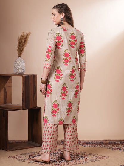 Floral Printed Embroidered Straight Fit Kurta -...