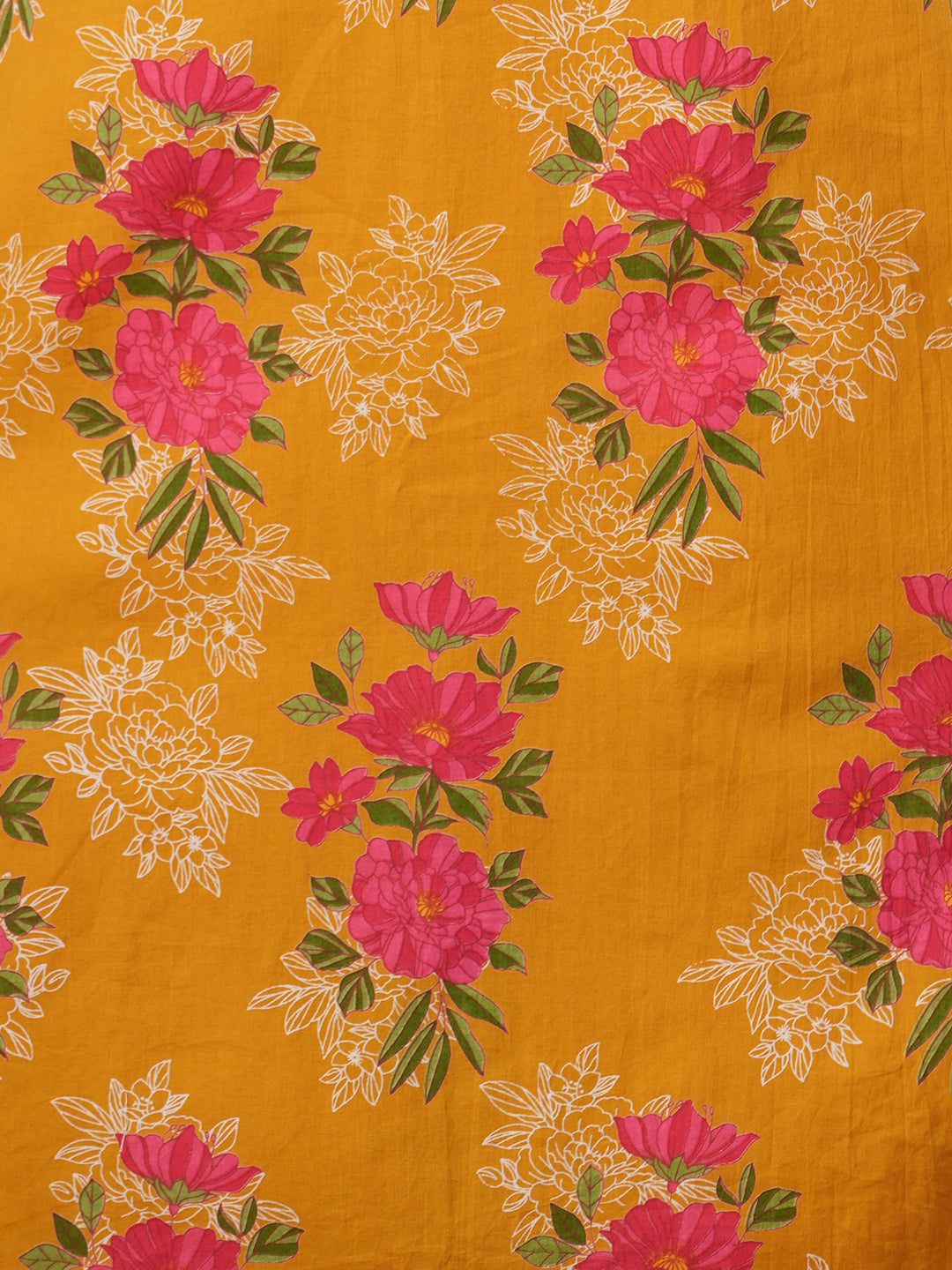 -Step into effortless elegance with this Ethnic Floral Printed Straight Fit Kurta with Palazzo in a refreshing Mustard hue. Crafted from soft, breathable cotton, it features intricate floral prints that celebrate timeless tradition. The kurta is styled with a flattering straight fit and detailed with delicate front buttons, perfectly paired with matching printed palazzo for a graceful, coordinated look. Ideal for festive days or casual chic moments