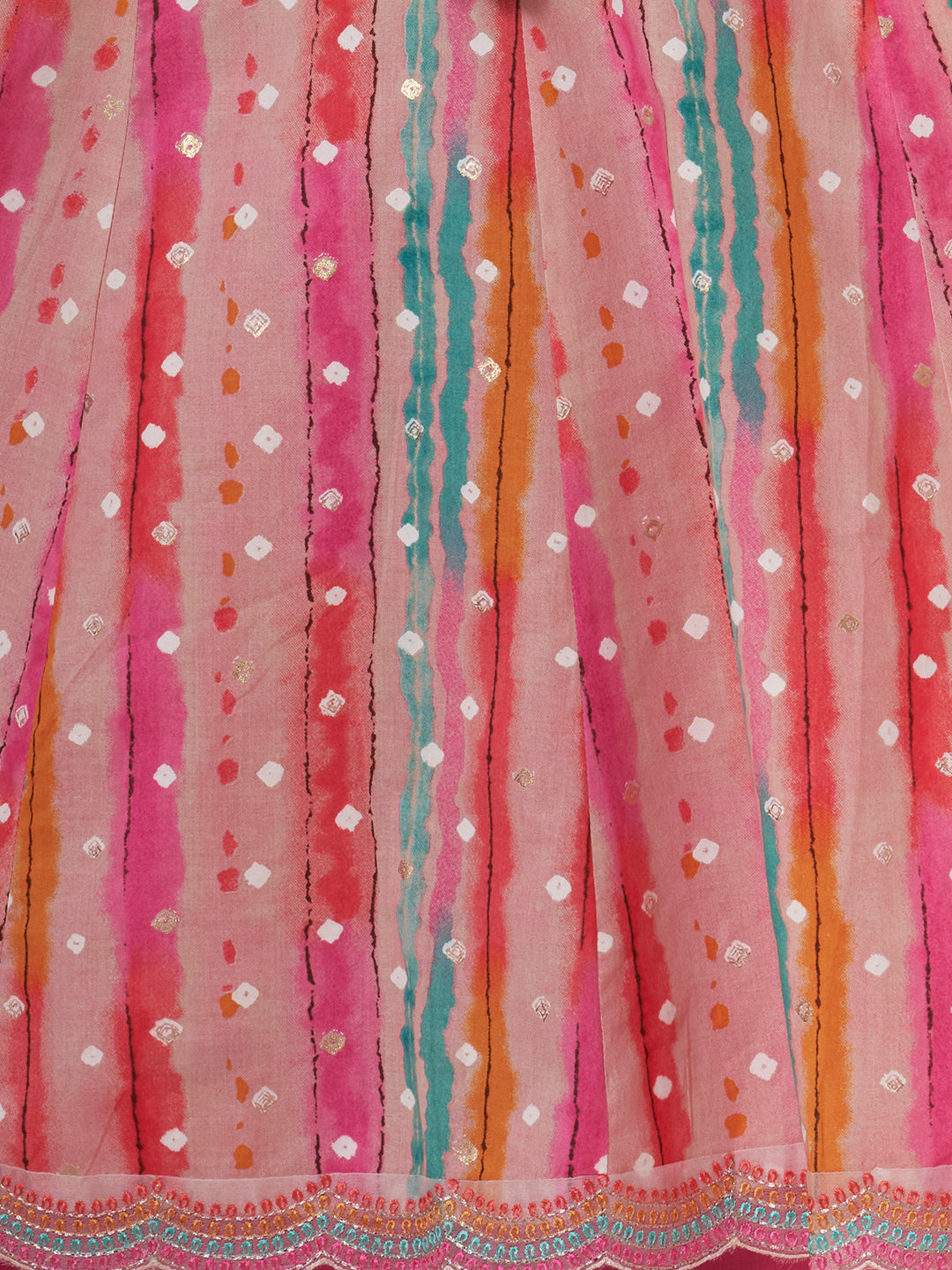 Ethnic Foil Stripes Printed A-Line Paneled Kurta with Pant - Multi