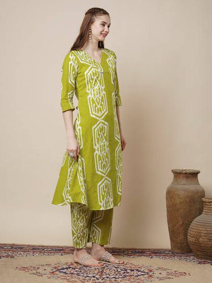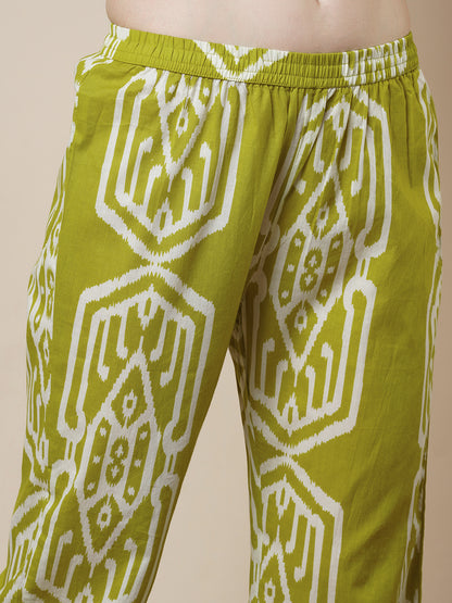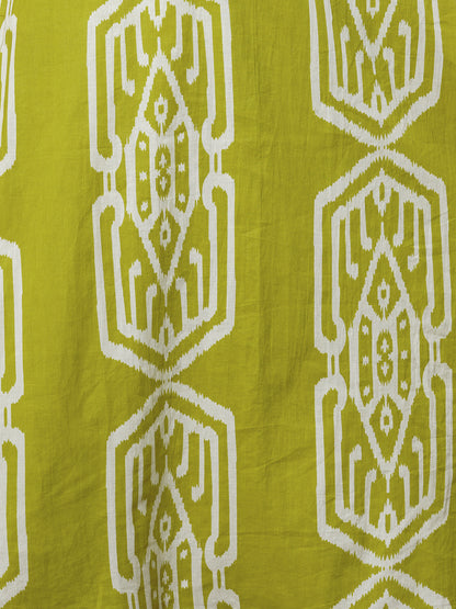 Ethnic Ikat Printed A-Line Flared Co-ord Set - Lime Green