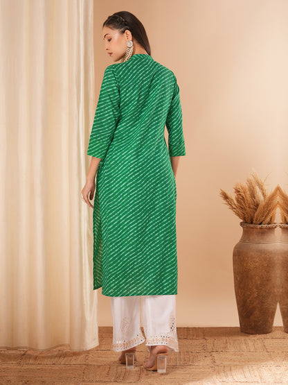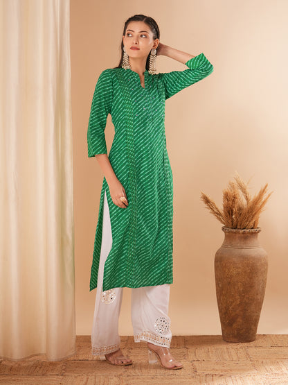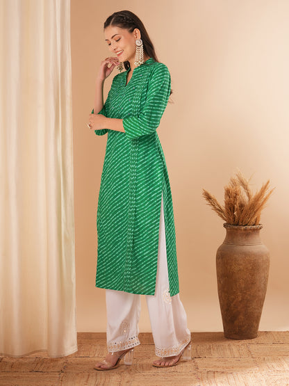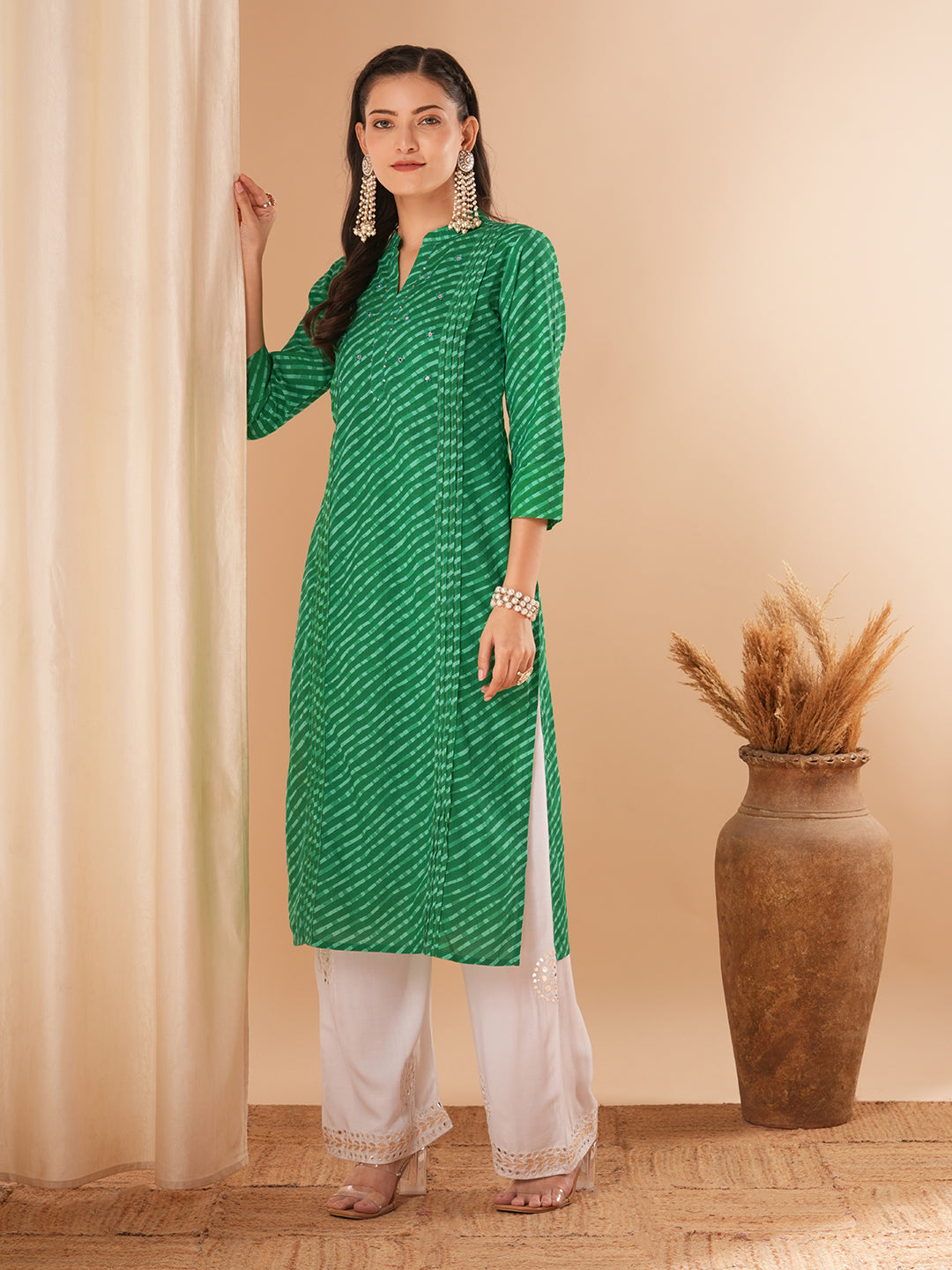Ethnic Leheriya Printed Straight Fit Kurta - Green
