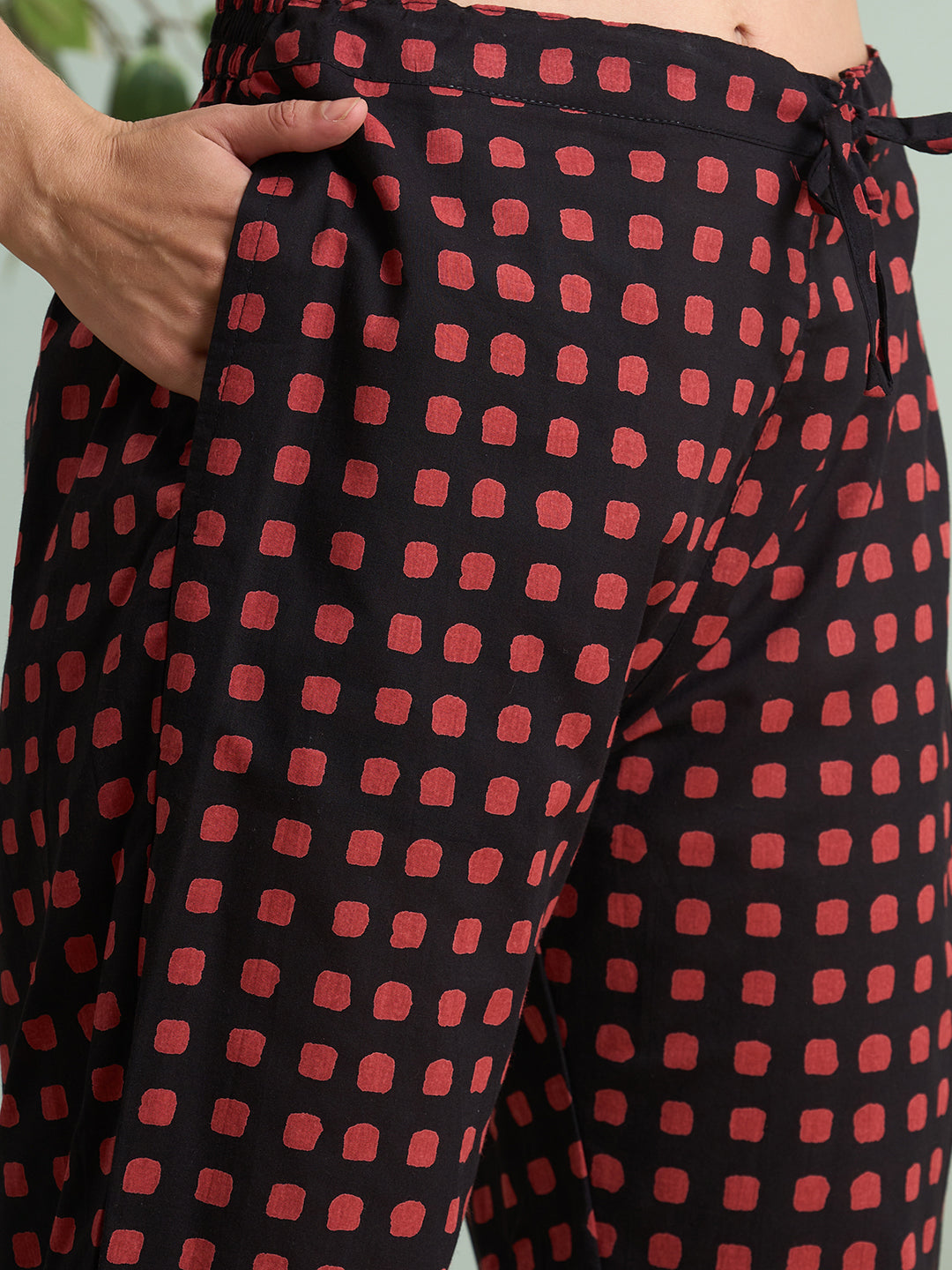 tep into timeless elegance with this Black Ethnic Printed Straight-Fit Kurta Set, crafted from soft, breathable cotton. The kurta features a classic round neckline adorned with delicate threadwork embroidery, adding a touch of refined charm. Paired with comfortable straight pants and a flowing pure cotton printed dupatta, this three-piece ensemble effortlessly blends tradition with contemporary flair—perfect for festive gatherings or elegant everyday wear.