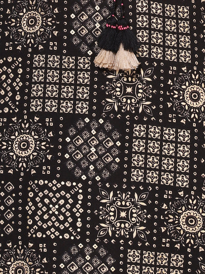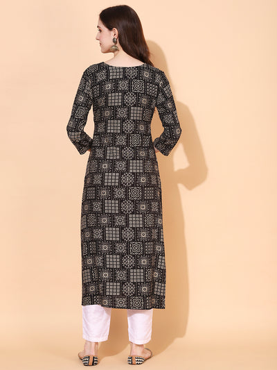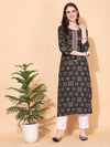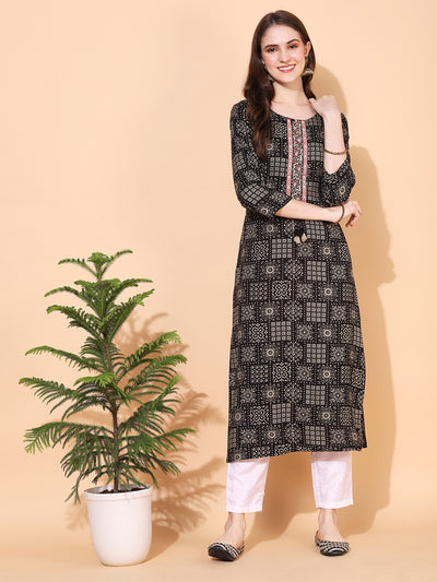 Ethnic Printed & Hand Embroidered Straight Fit Kurta - Black