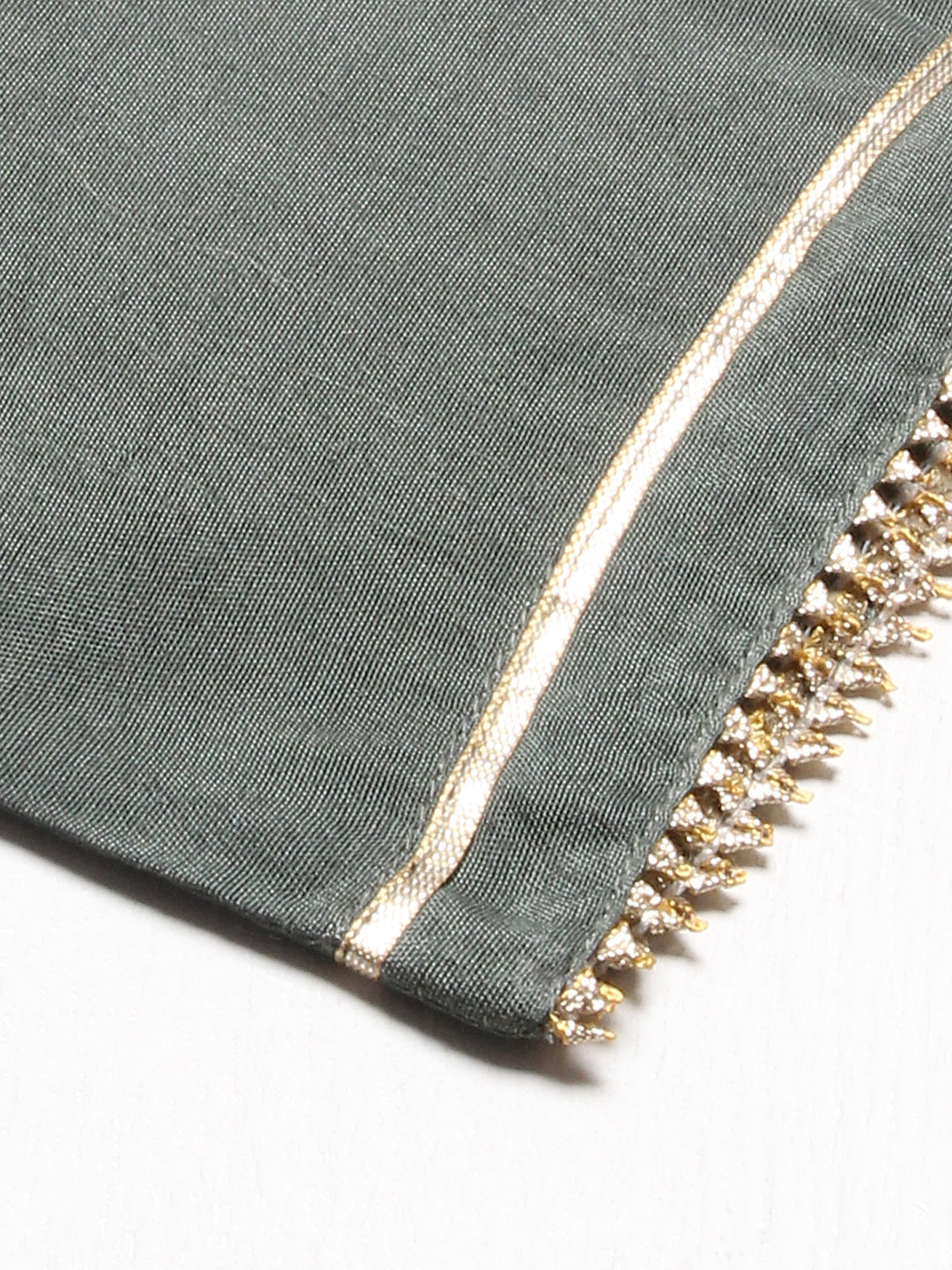Ethnic Printed & Hand Embroidered Straight Kurta with Pant & Dupatta - Grey