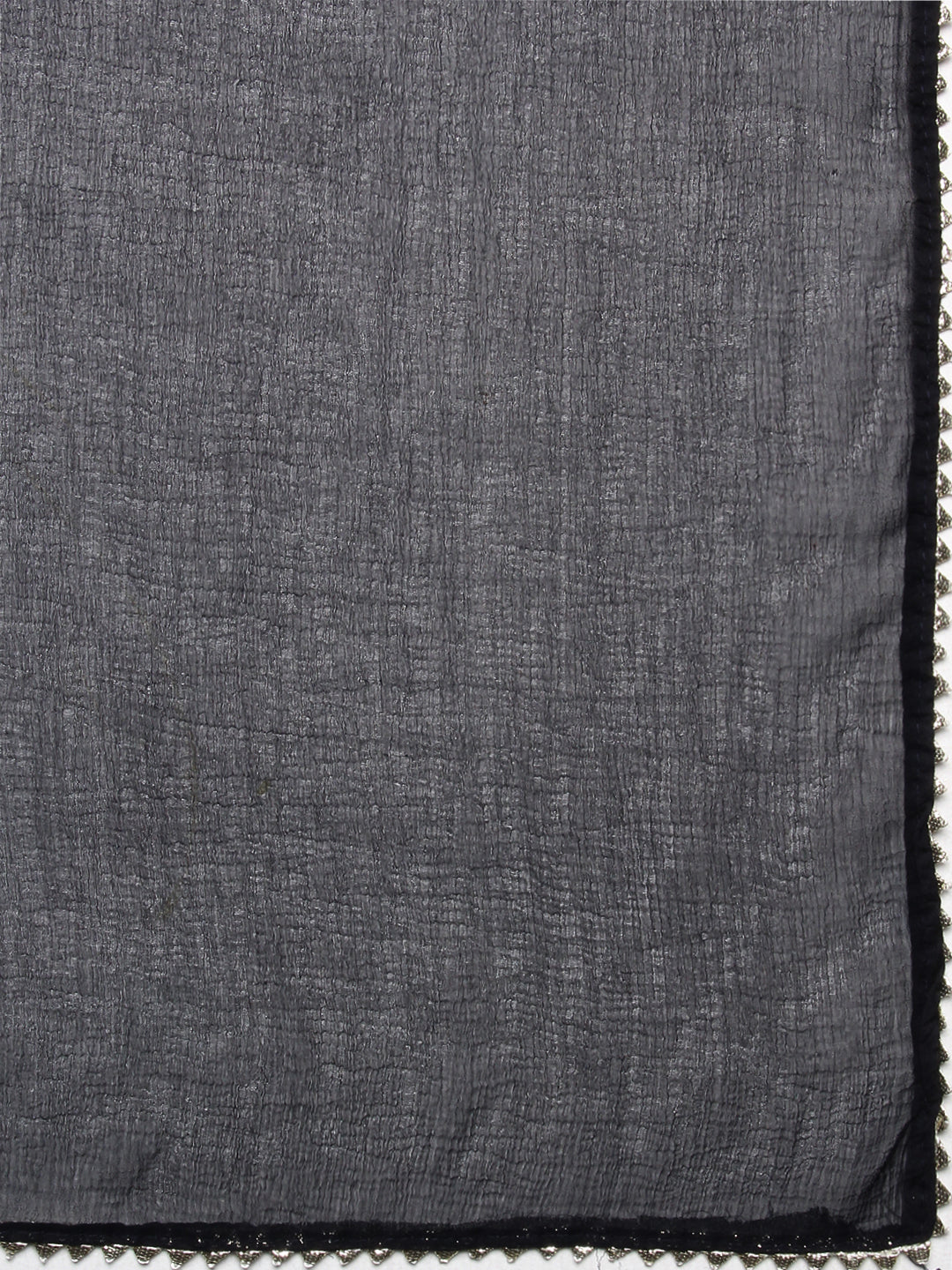Ethnic Printed & Mirror Embroidered A-Line Kurta with Palazzo & Dupatta - Navy Blue