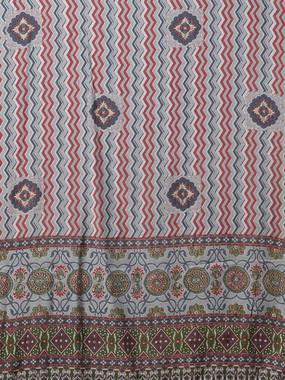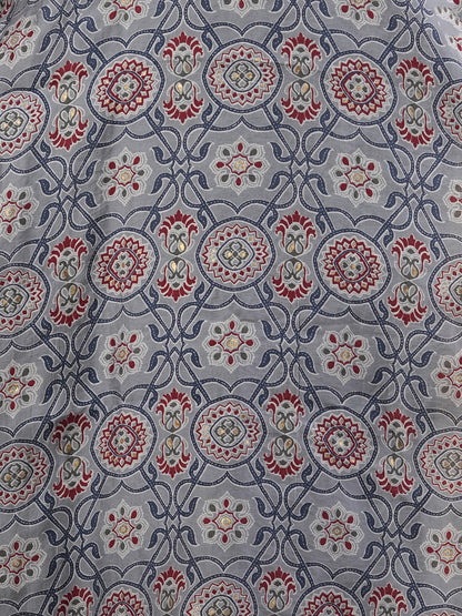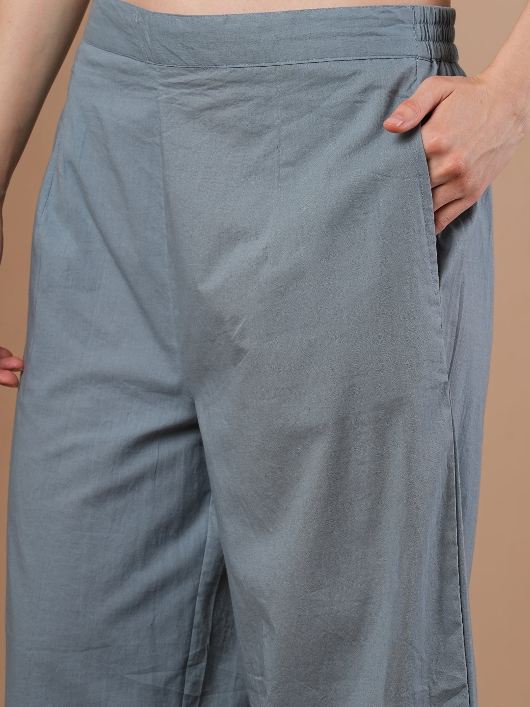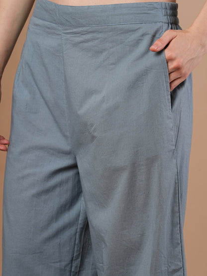 Crafted in rich muslin silk, the straight-fit kurta and dupatta are adorned with mirror embroidery and elegant foil prints. Paired with comfortable solid cotton pants, this ensemble blends traditional charm with modern simplicity. The subtle shimmer and flowing silhouette make it perfect for festive occasions or cultural celebrations. Effortlessly stylish, this set brings sophistication to every step.