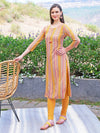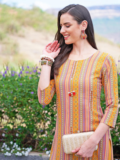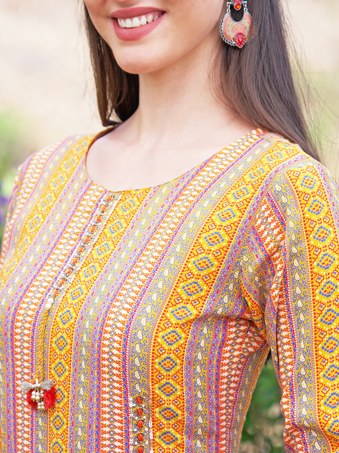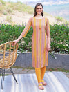Ethnic Stripes Printed & Hand Embroidered Straight Fit Kurta - Yellow
