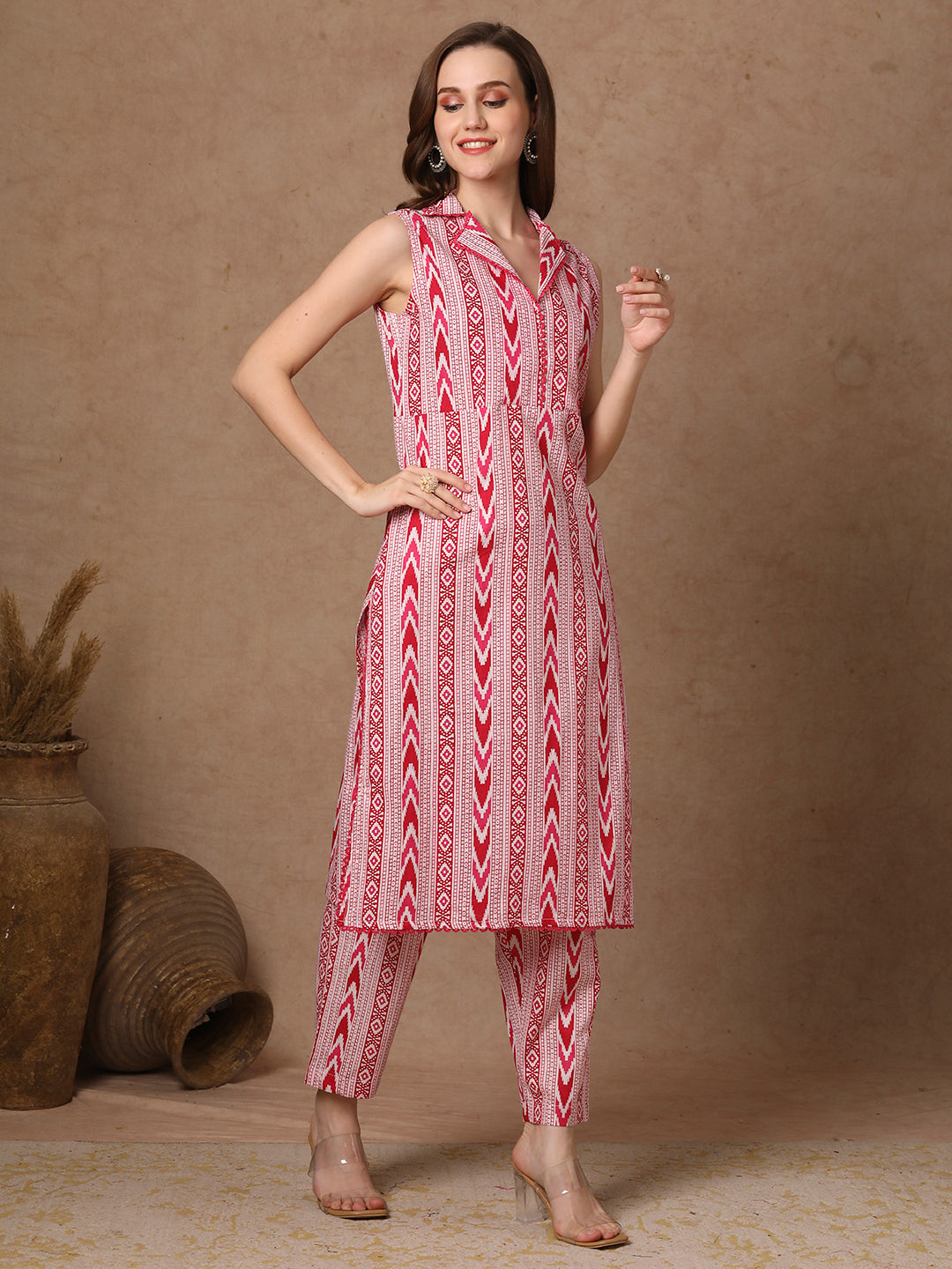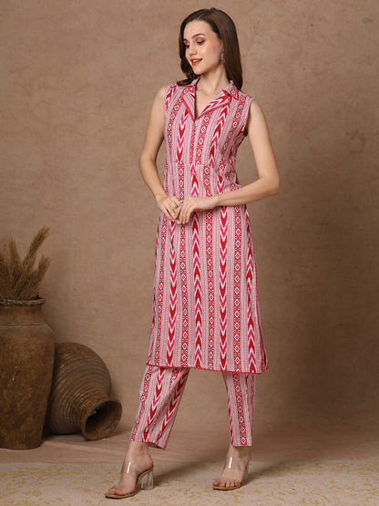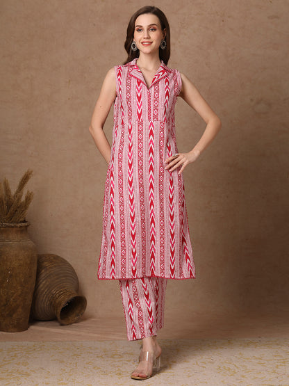 Ethnic Stripes Printed Straight Fit Co-ord Set - Pink