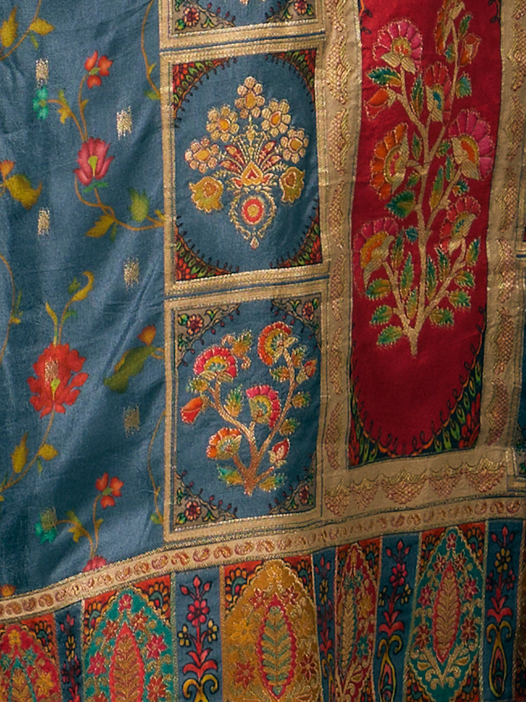 Floral Patchwork Embroidered A-Line Flared Kurta -...